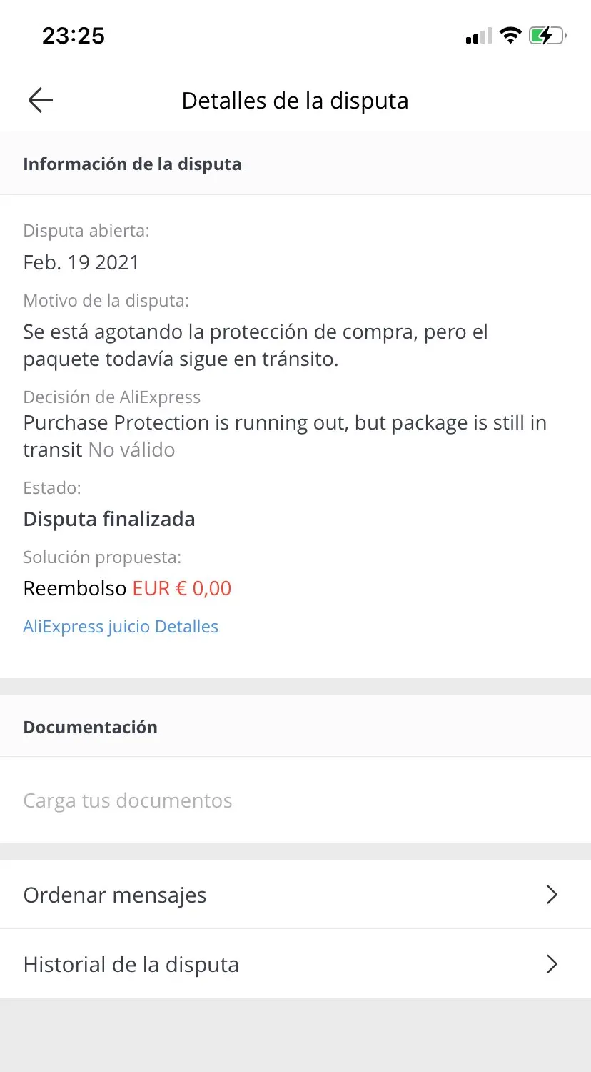 Valoración de Aliexpress:
