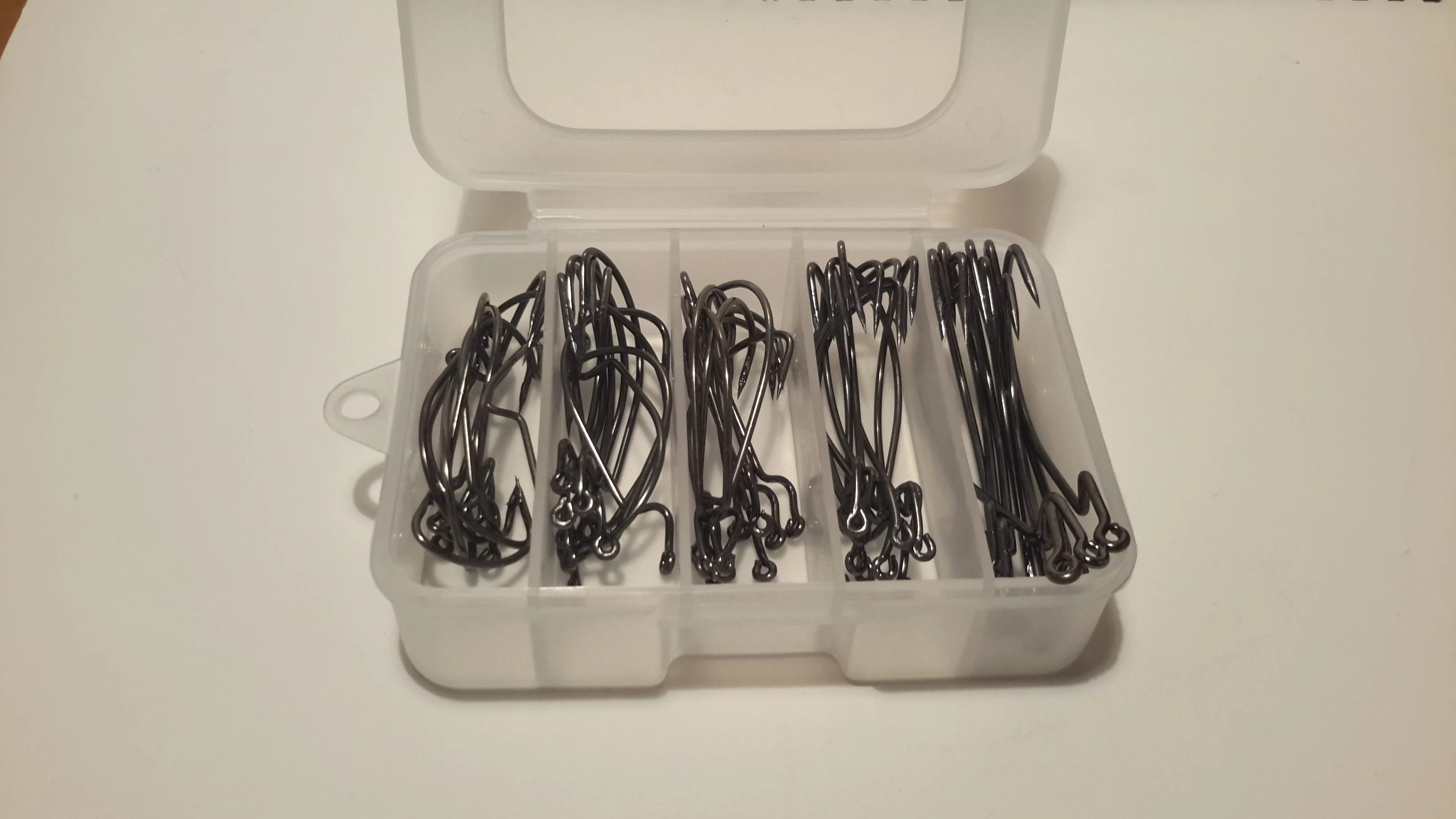 Anzuelo de pesca grande, 50 Uds., color negro, tamaño 1/0-5/0, con caja de transporte