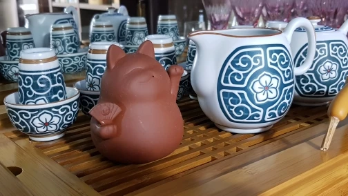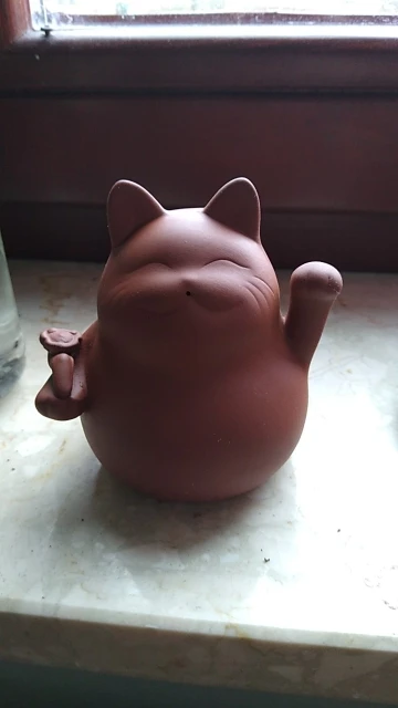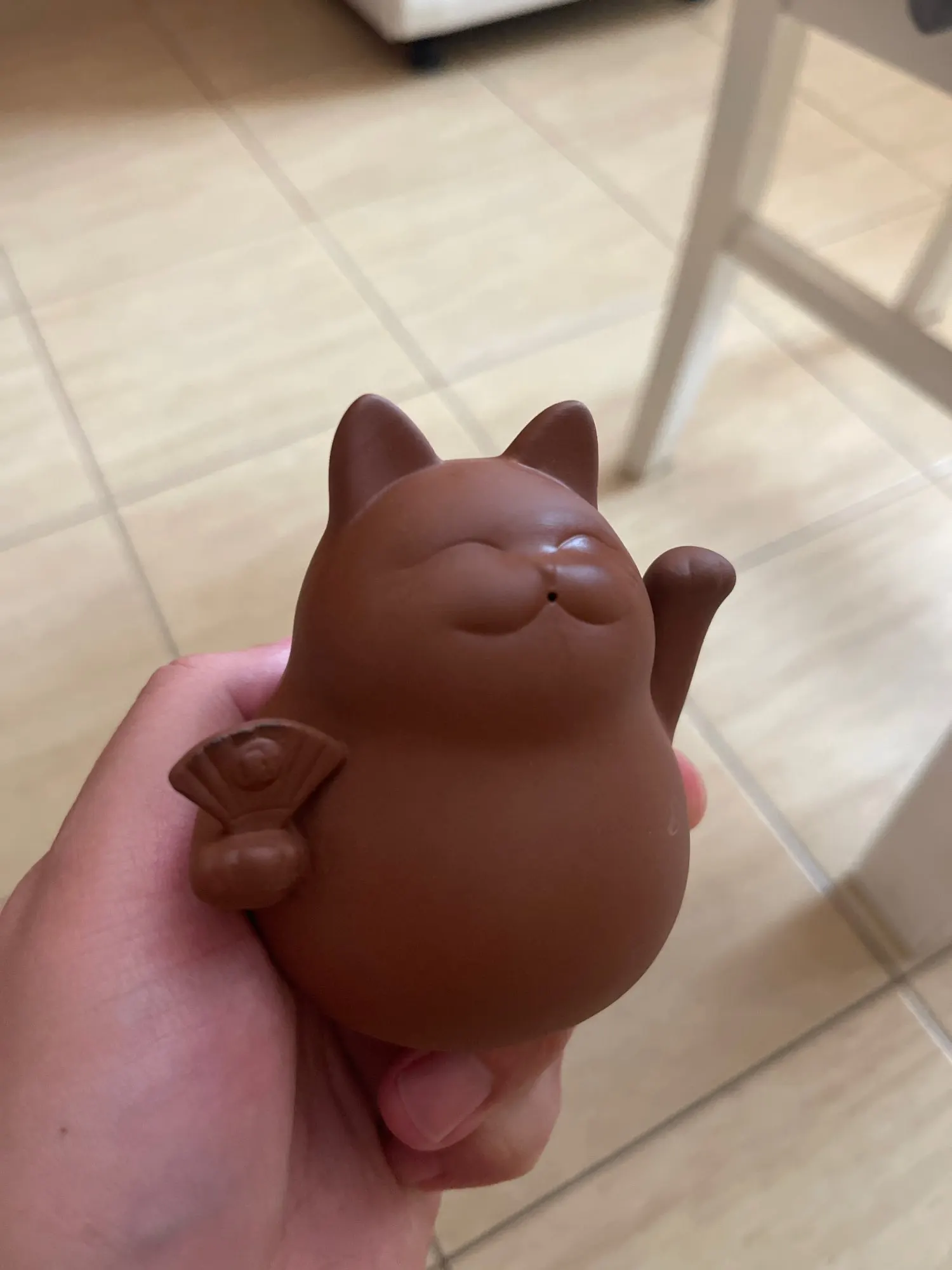 Arcilla púrpura gato de la suerte mascota té hecho a mano, pequeño Animal lindo figuras de cerámica creativa artesanía té decoración de la Mesa de adornos