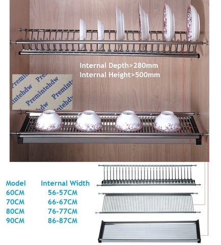 Armario de cocina de pared de 60CM, 70CM, 80CM, 90CM, 2 niveles, de acero inoxidable, organizador de vajilla