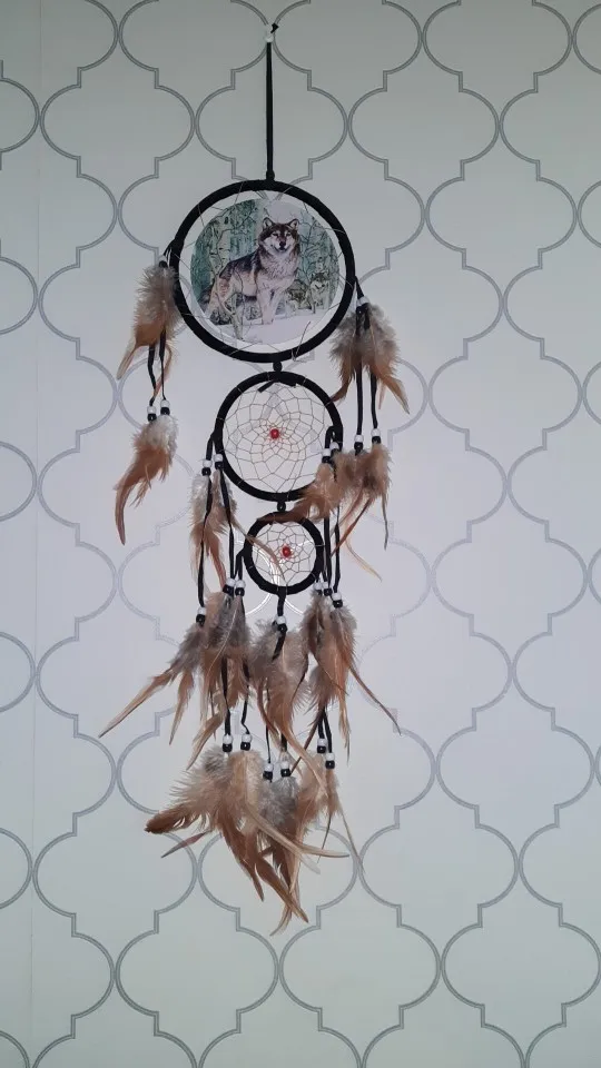 Artesanías con plumas atrapasueños, carillones de viento marrones hechos a mano, atrapasueños con Red para colgar en la pared, decoración para hogar y coche
