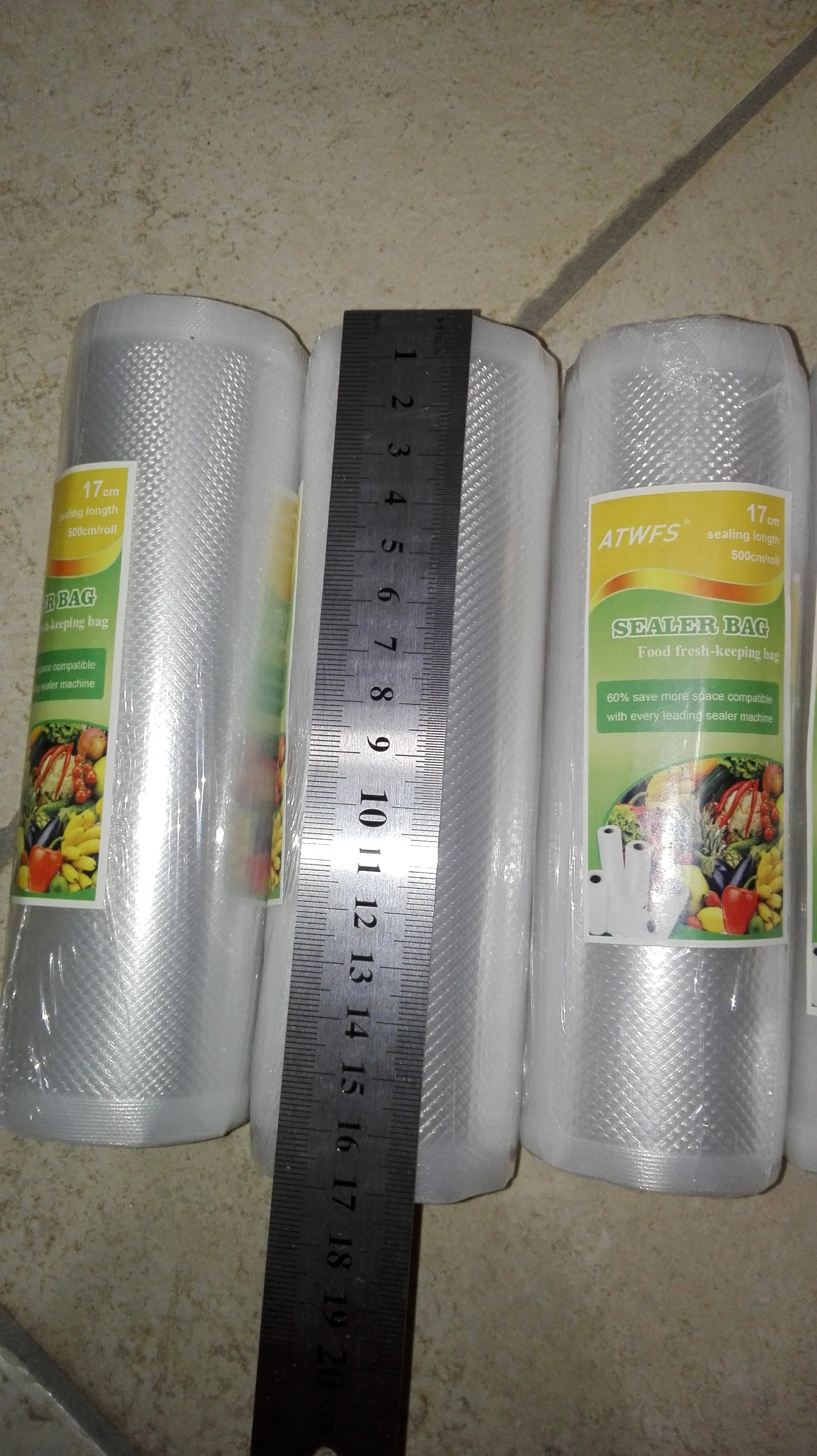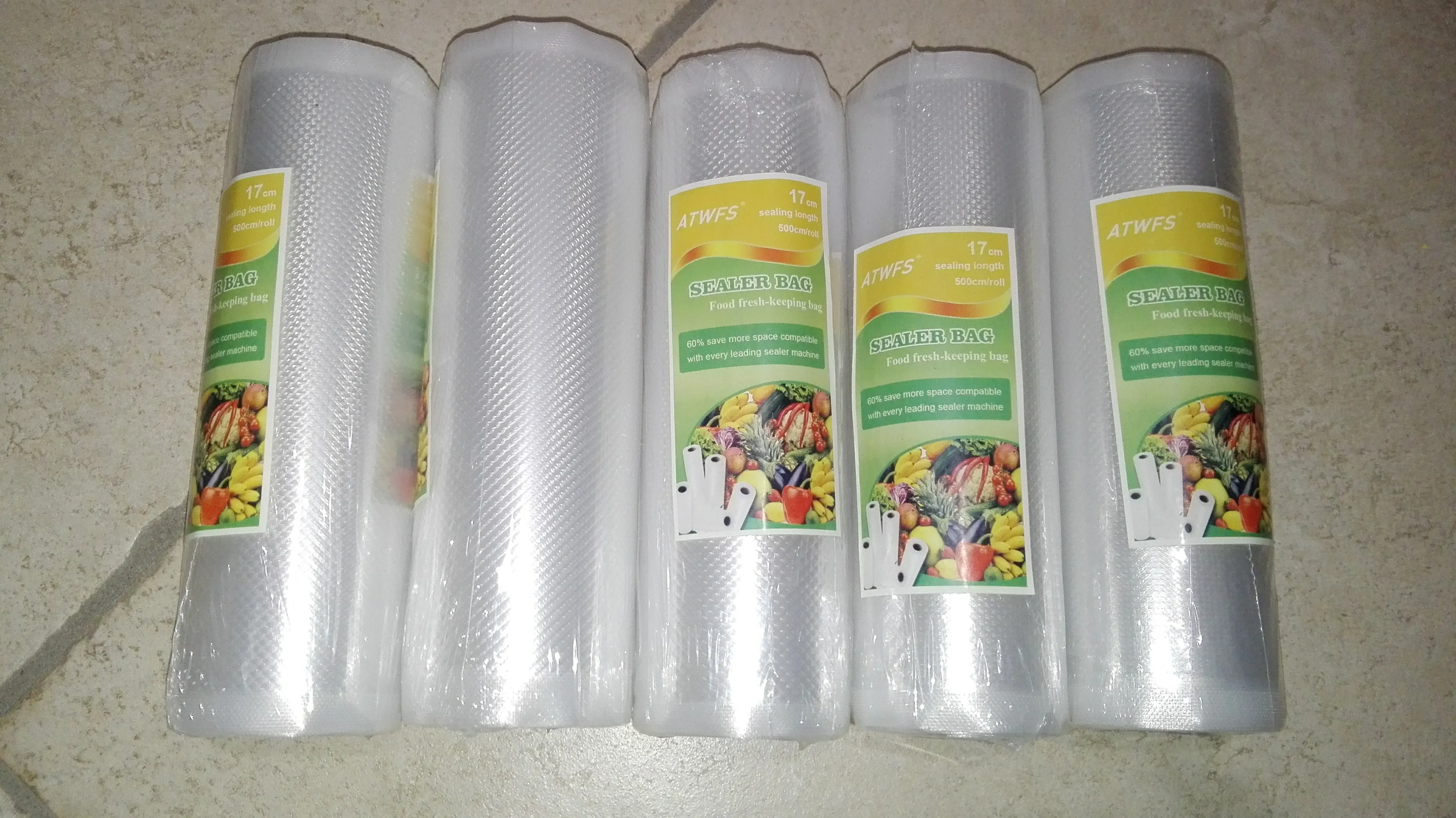 ATWFS-bolsas de vacío para sellador al vacío de alimentos, bolsas de almacenamiento para máquina de embalaje, 12/17/20/25/28cm x 500cm, 5 rollos por lote