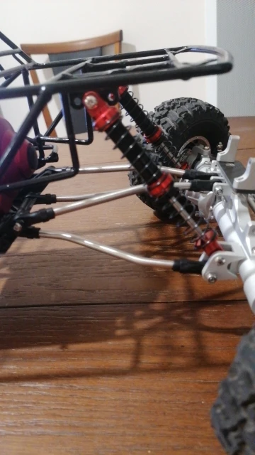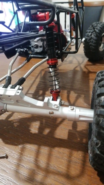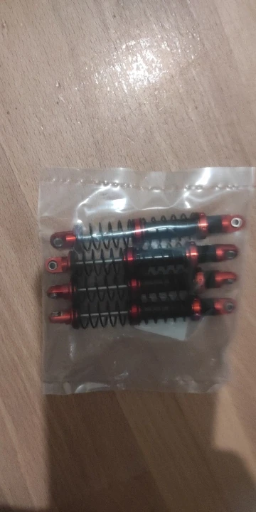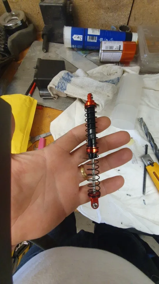 Recibido en menos de dos semanas. Es todo de aluminio, menos la tapa de las toricas. El vastago esta torneado, pero muy basto. Lo he pulido a espejo. No es como un cromado, pero lo suficiente como para que las toricas duren mas y no tener perdidas de aceite. La cabeza del bastago, viene sin fijar con bloqueador de roscas. El aceite se tiene q comprar a parte. Aun asi, recomendable.