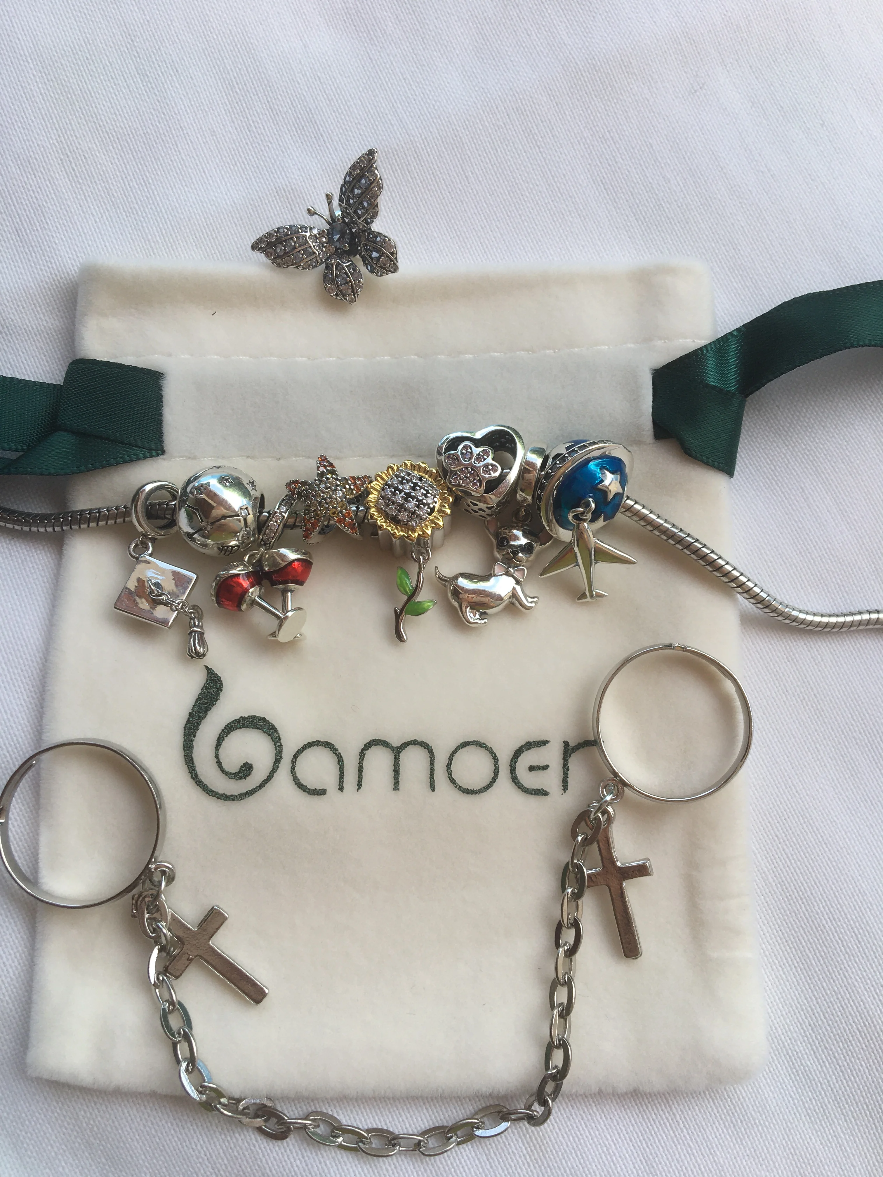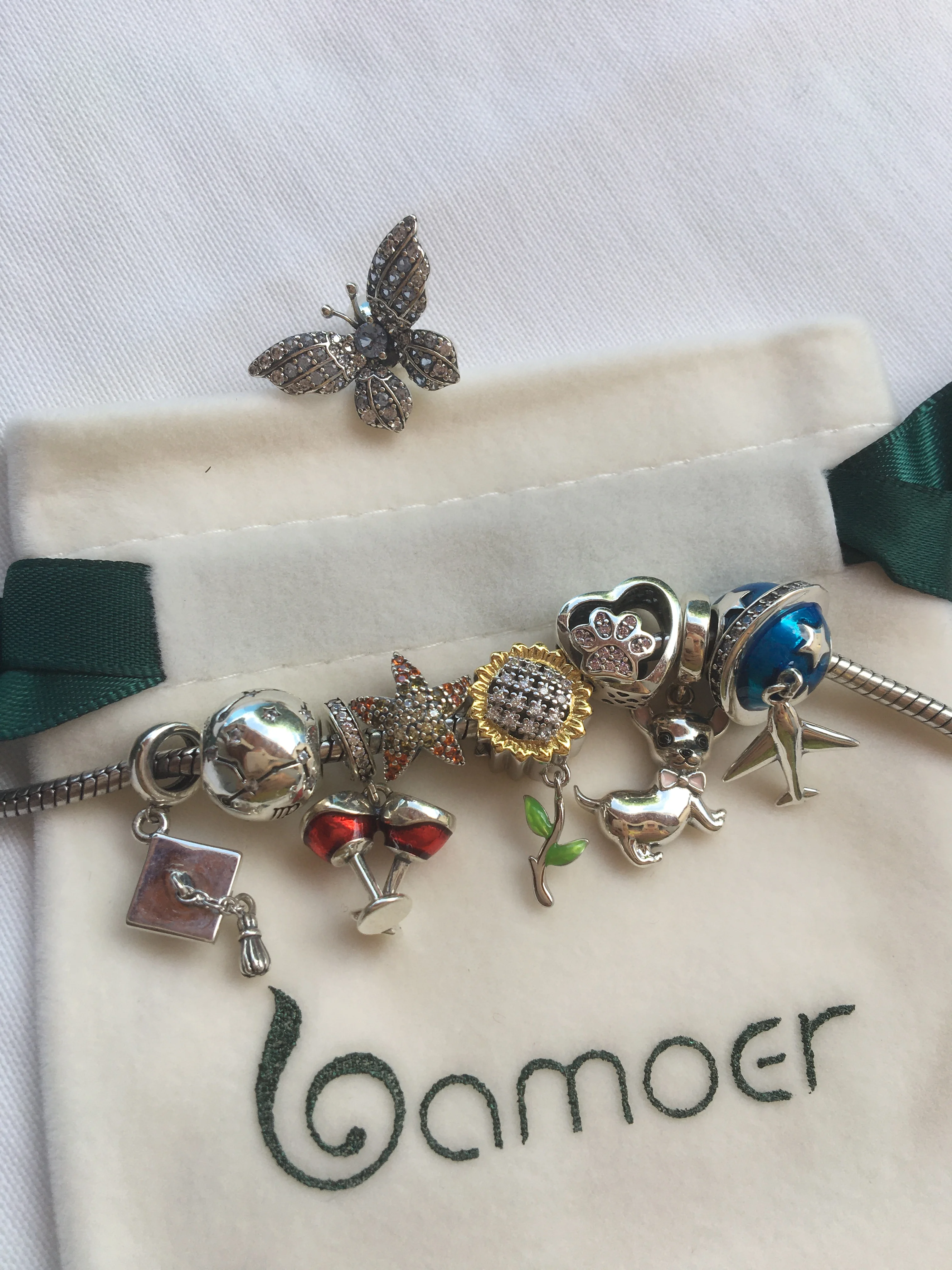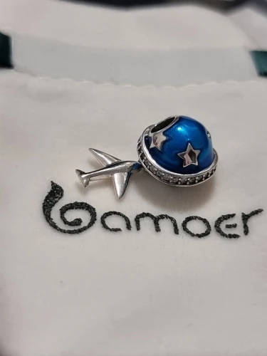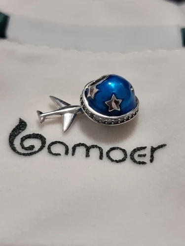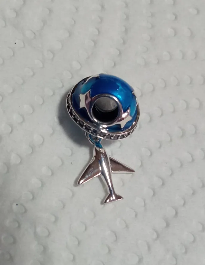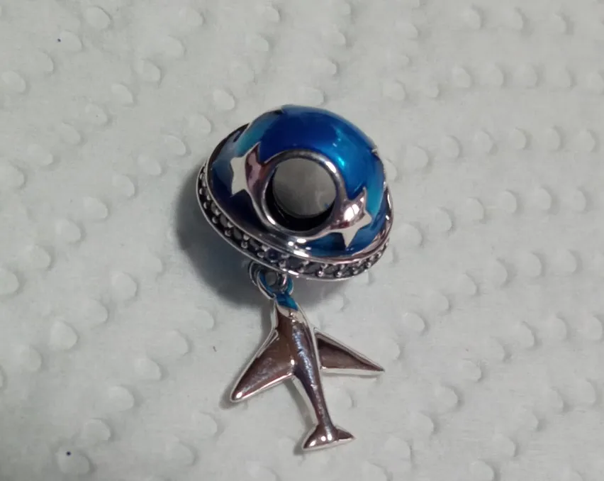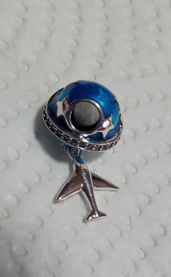 BAMOER-Plata de Ley 925 auténtica brillante de estrella y avión, abalorios de esmalte azul de circonia cúbica transparente, aptos para pulseras, joyería artesanal SCC887