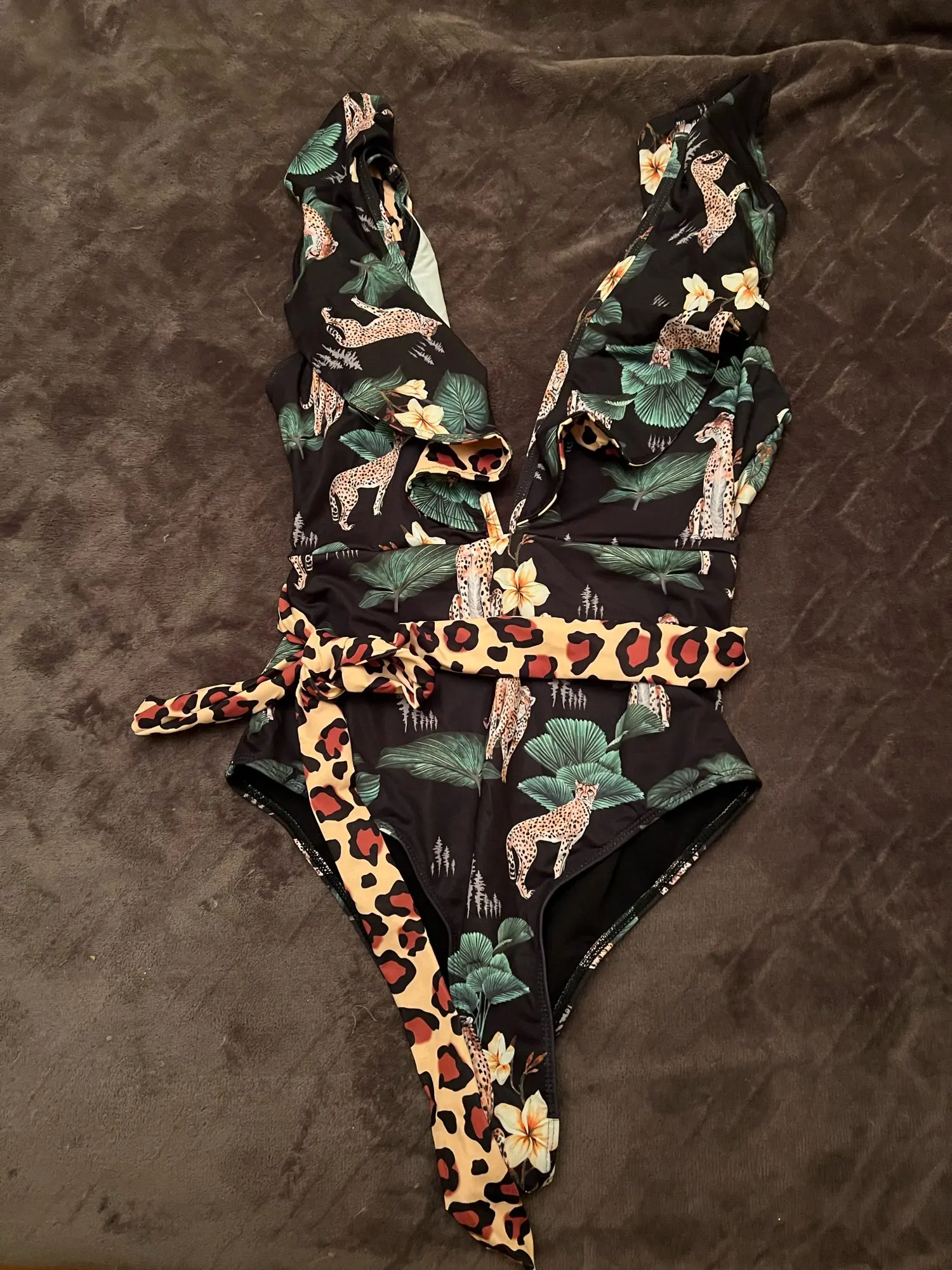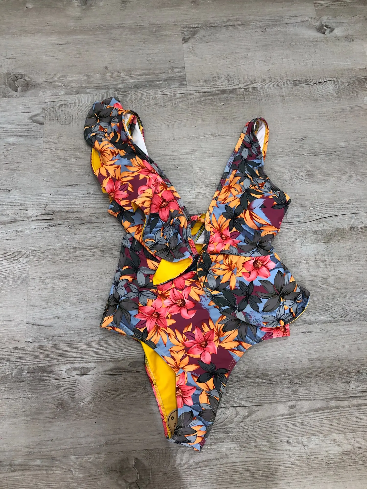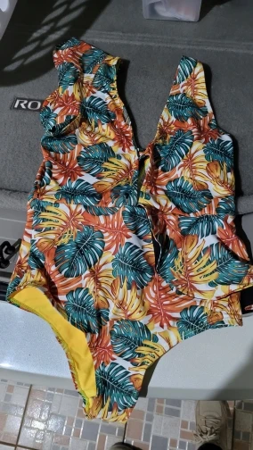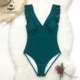 Bañador con estampado Floral de volantes para mujer, traje de baño Sexy de una pieza con hombros descubiertos, ropa de playa unicolor de pico profundo, ropa de baño, monokini, novedad de 2022