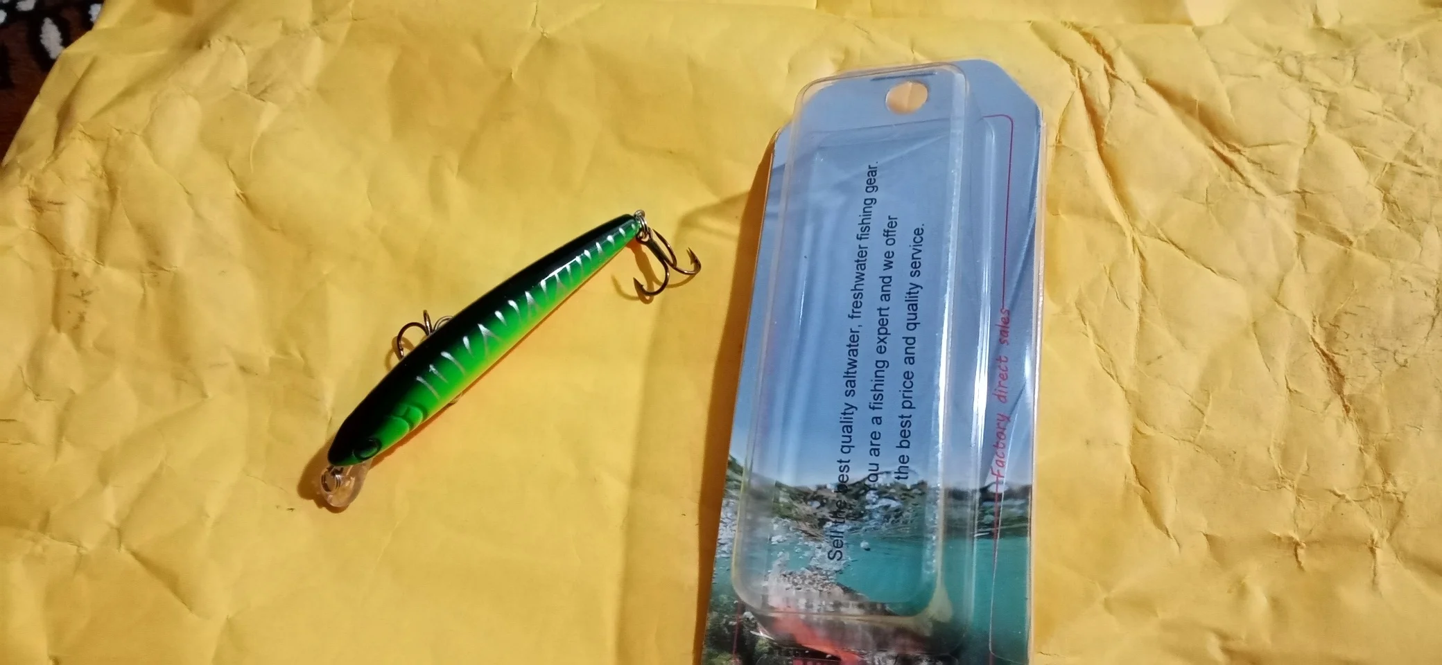 señuelo tipo jernbait, muy bien terminado, tamaño alevin para peces medianos a grandes, blanco o azul, aun no he probado, pero creo q debe ir muy bien para currican lento con kayak, recibi muy rapido, gracias