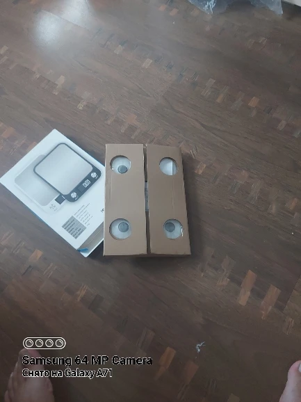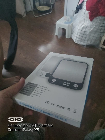 Producto exacto, compacta. Viene en caja y tiene atrás para colgar. Tiene ajuste para varios tipos de medida