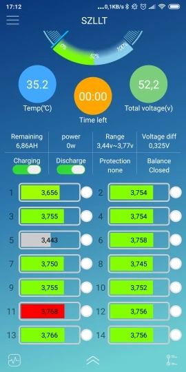 Batería de ion de litio inteligente 14S, 58,8 V, Bluetooth, BMS con software de gestión de aplicación para patinete eléctrico, batería de bicicleta lipo con 20A a 60A