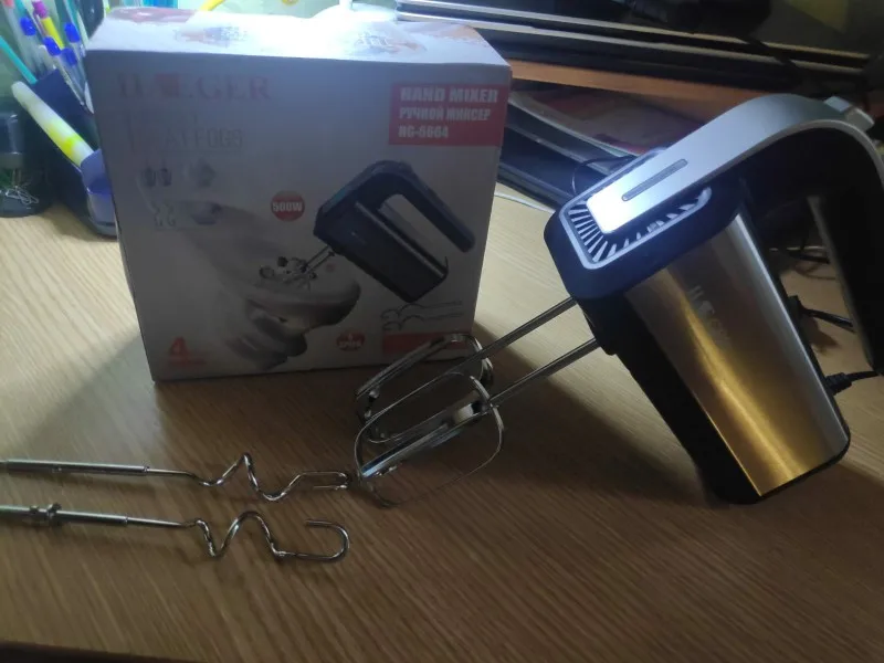 Batidora de mano eléctrica de alta velocidad, mezclador de 5 velocidades de 500W, amasadora en espiral de acero inoxidable, batidora de masa de alimentos con 2 batidores de huevo, 2 ganchos para masa
