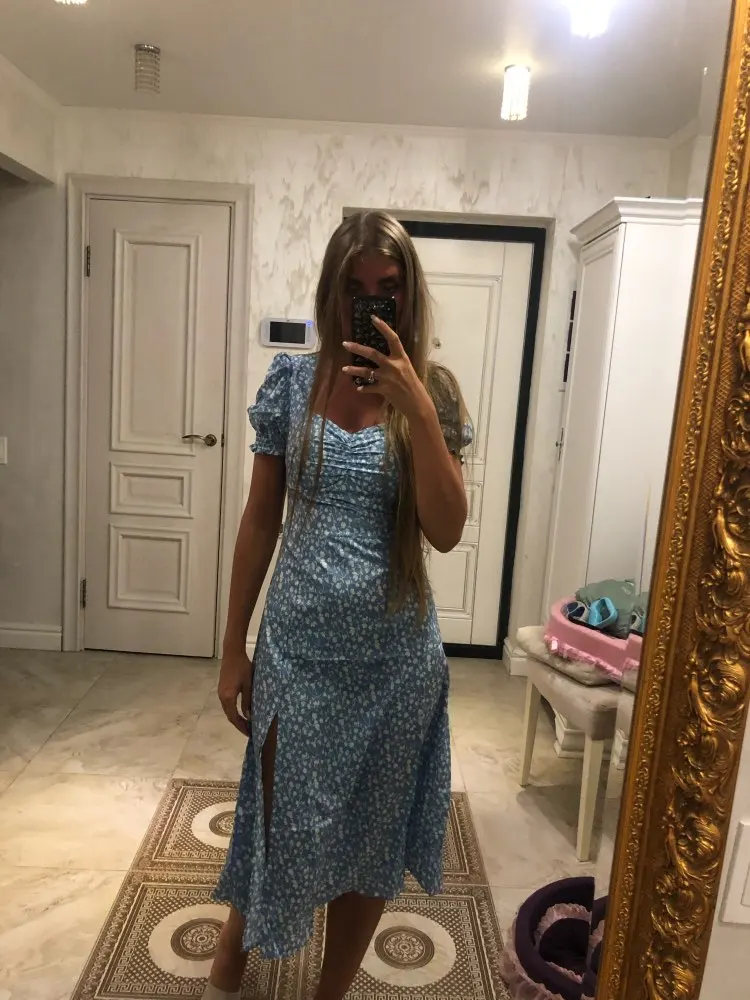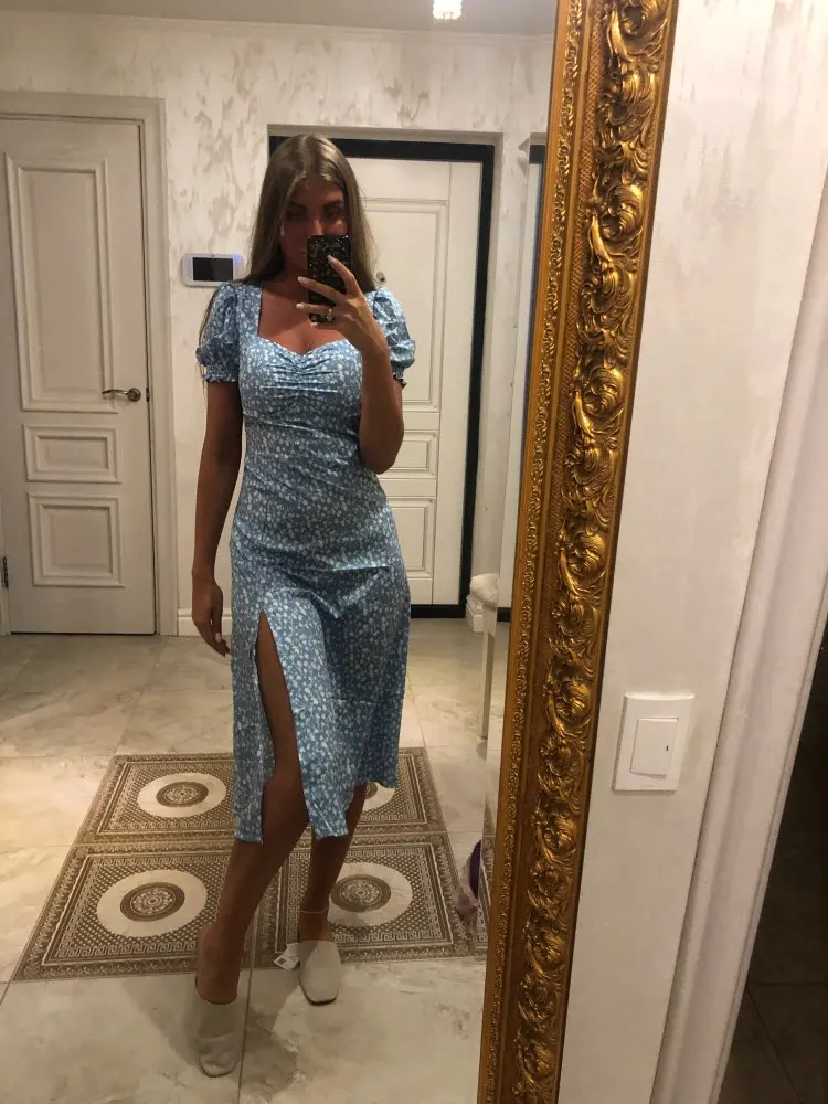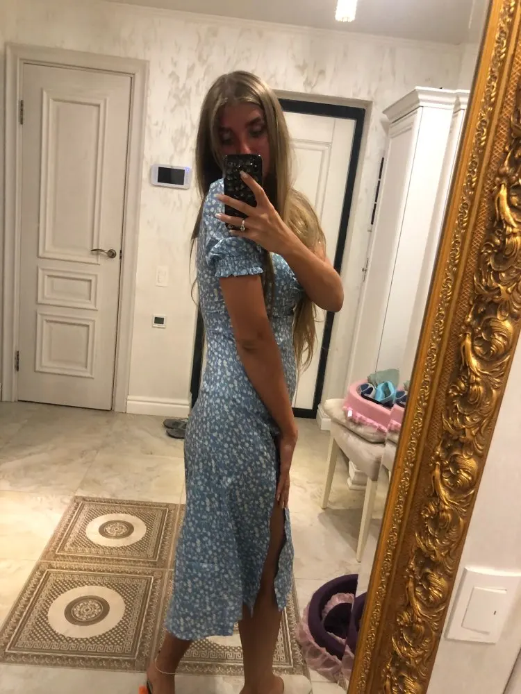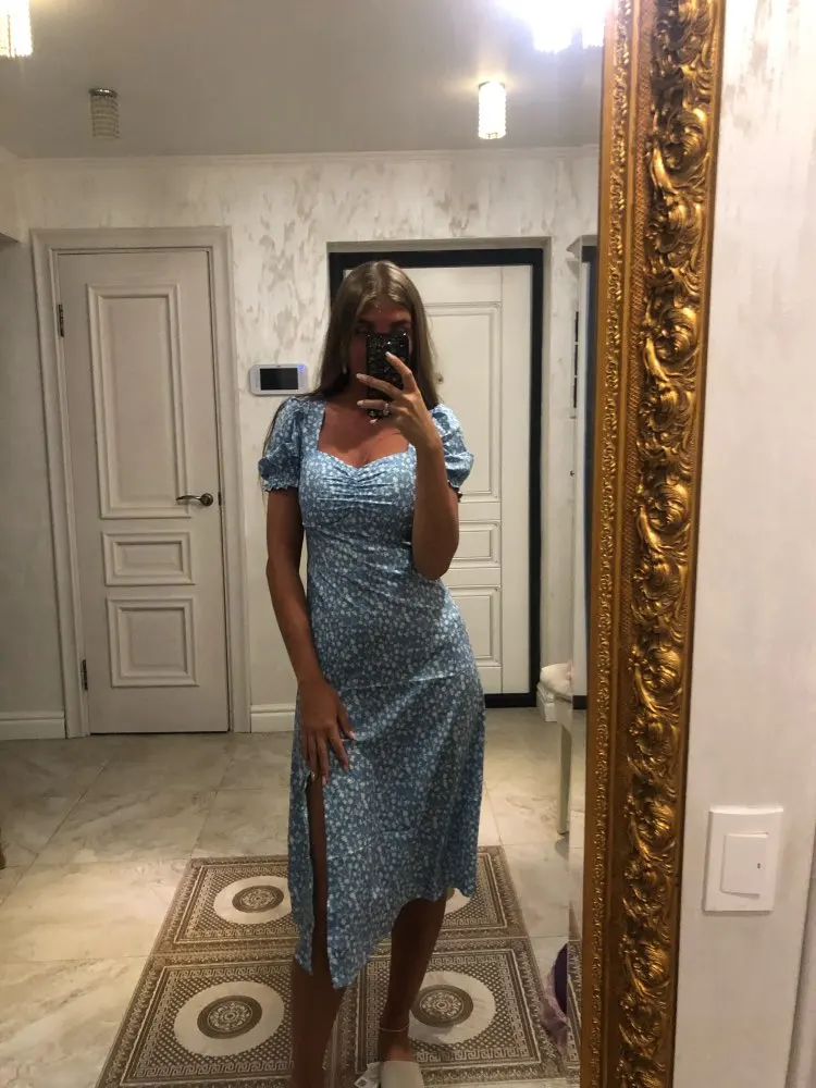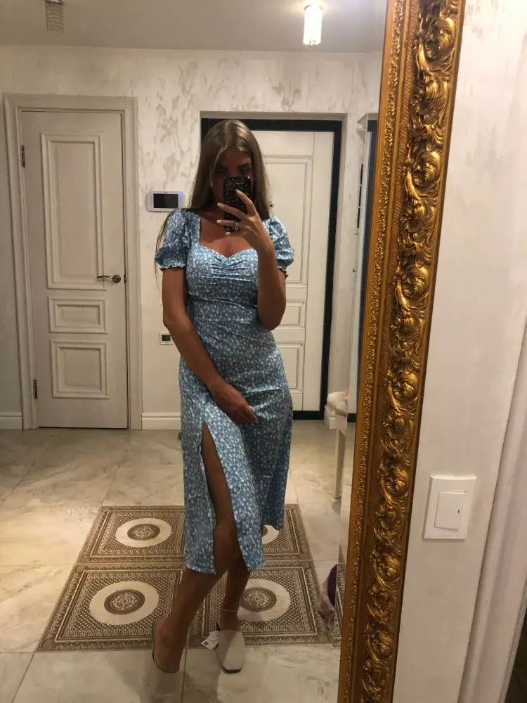 Bazaleas-vestido de otoño con estampado Floral para mujer, con abertura ropa Vintage, manga corta abombada, triangulación de envíos