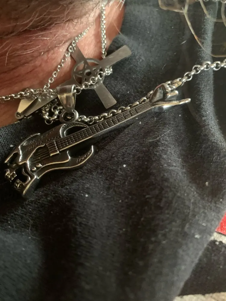 BEIER Acero inoxidable accesorios punk rock moda rock hip hop cráneo guitarra gesto de la victoria collar instrumento pendantBP8-344
