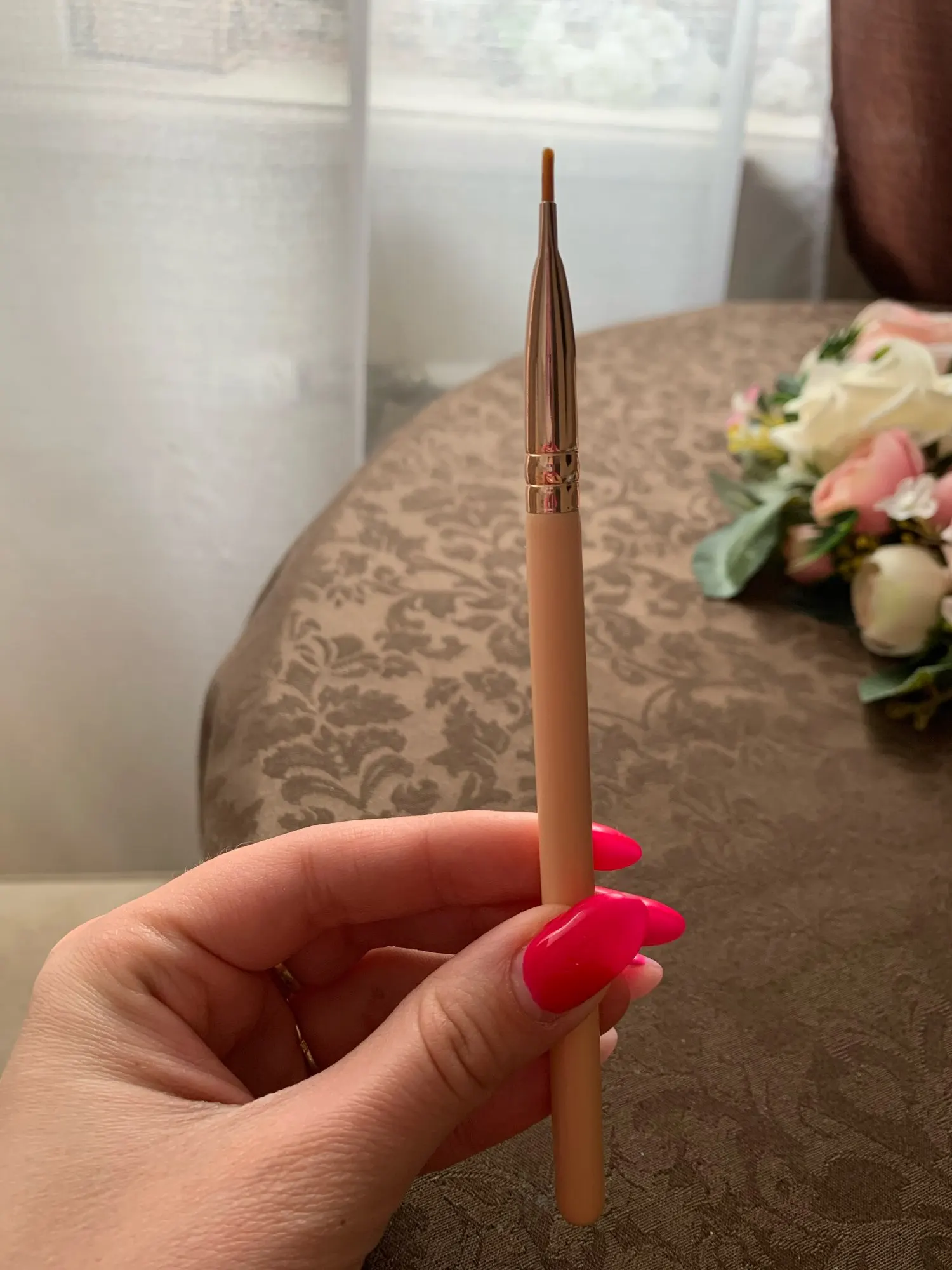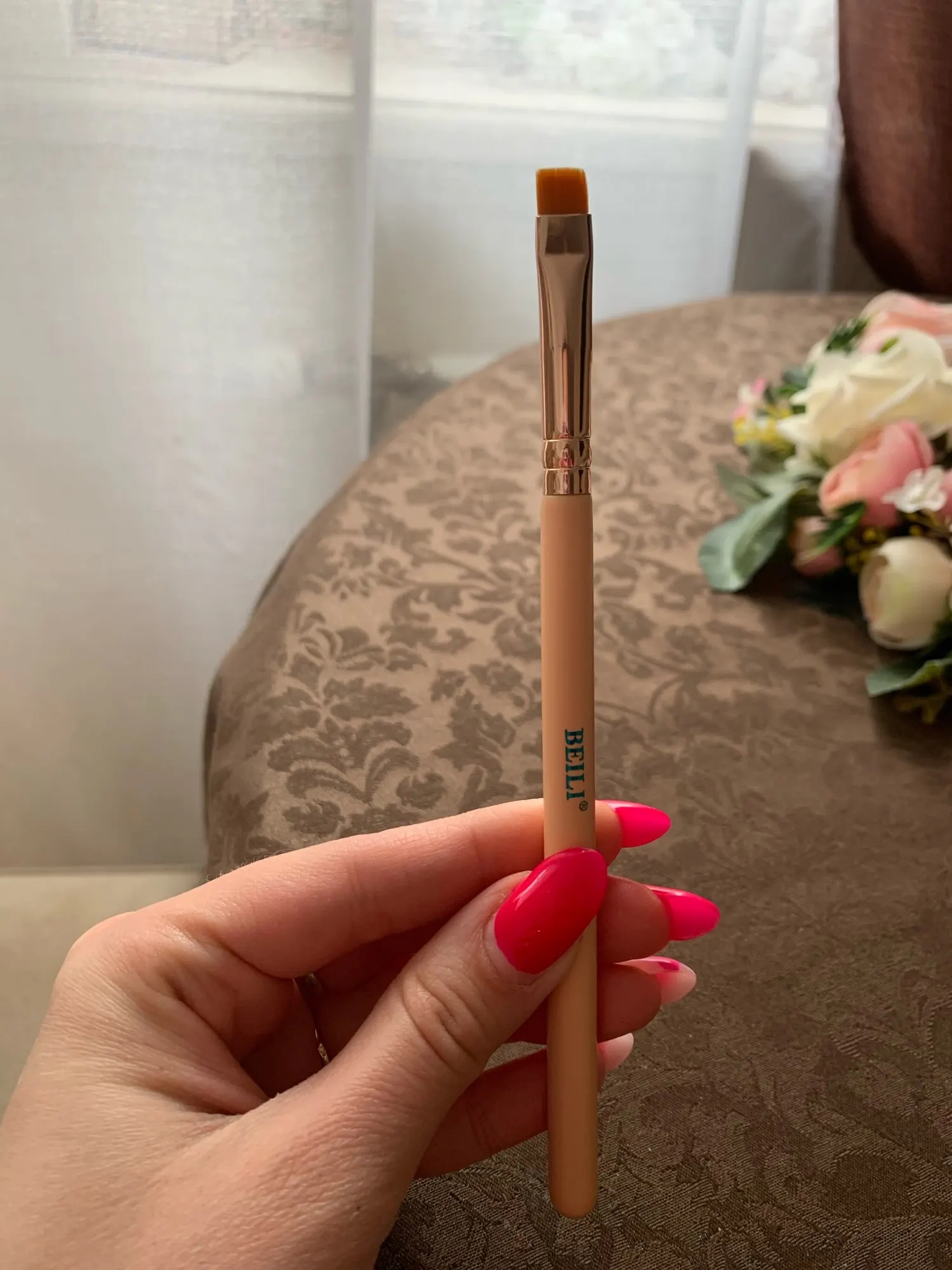 BEILI-brocha de maquillaje rosa, corrector preciso pequeño para sombra de ojos, contorno de ojos, pelo sintético de cabra, rosa y dorado