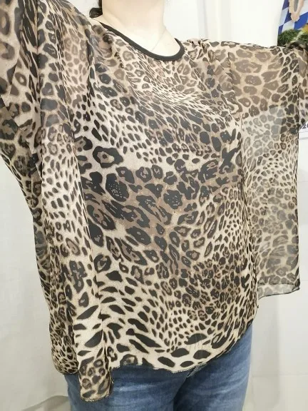 BHflutter 4XL 5XL 6XL Plus tamaño blusa de las mujeres 2022 Sexy hombro estampado de leopardo verano Camisetas De gasa Casual blusas camisas