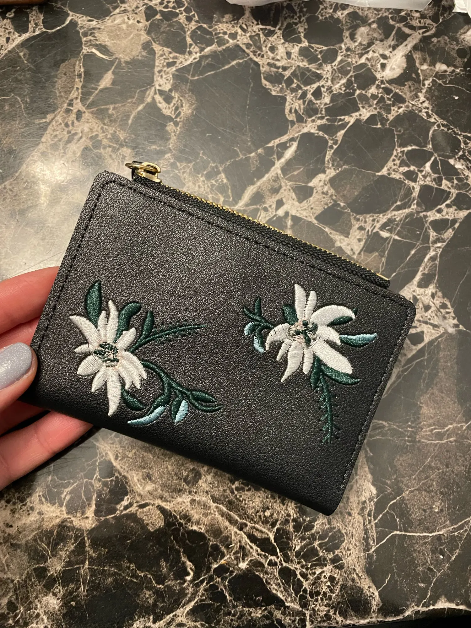 Billetera corta con estampado de flores para mujer, monedero pequeño con cremallera, tarjetero de cuero