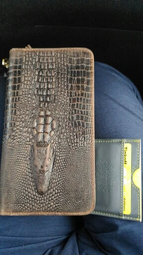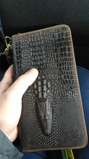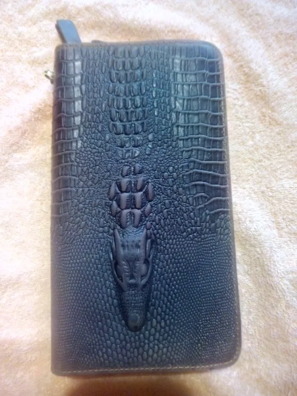 Billetera de piel de cocodrilo para hombre, bolso de mano de negocios, para teléfono móvil, Cuero de vaca Real