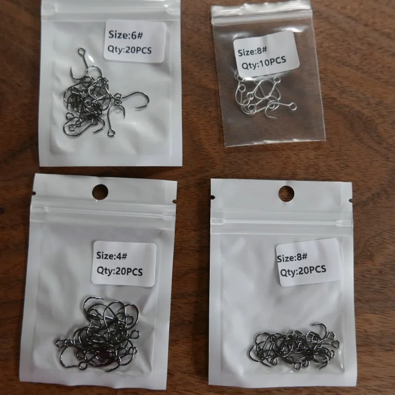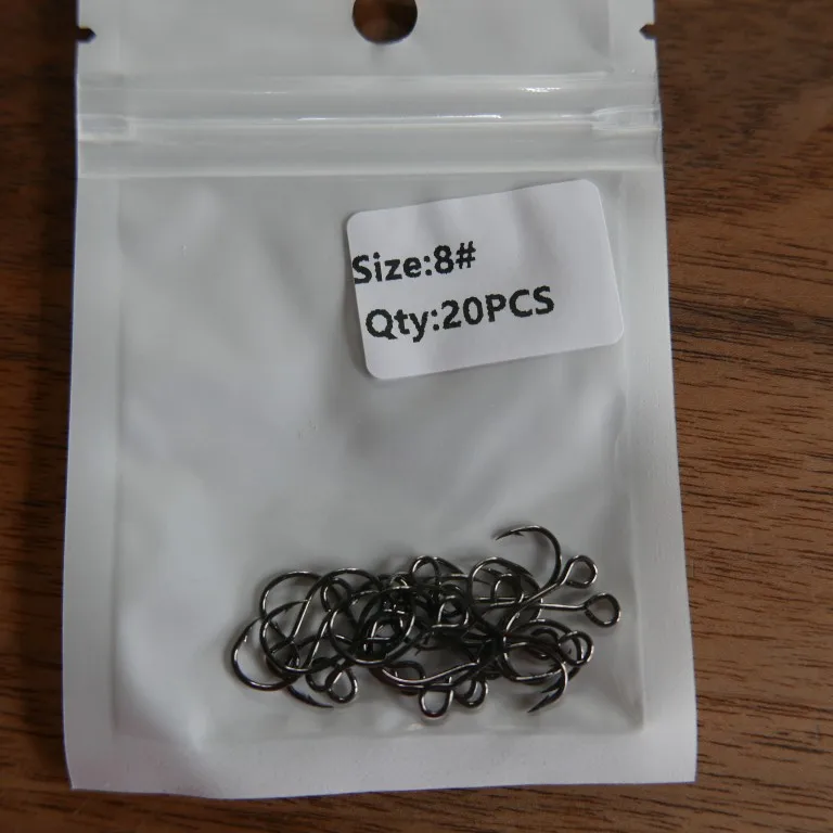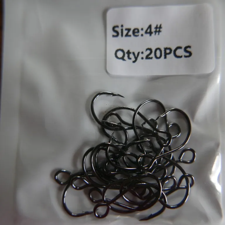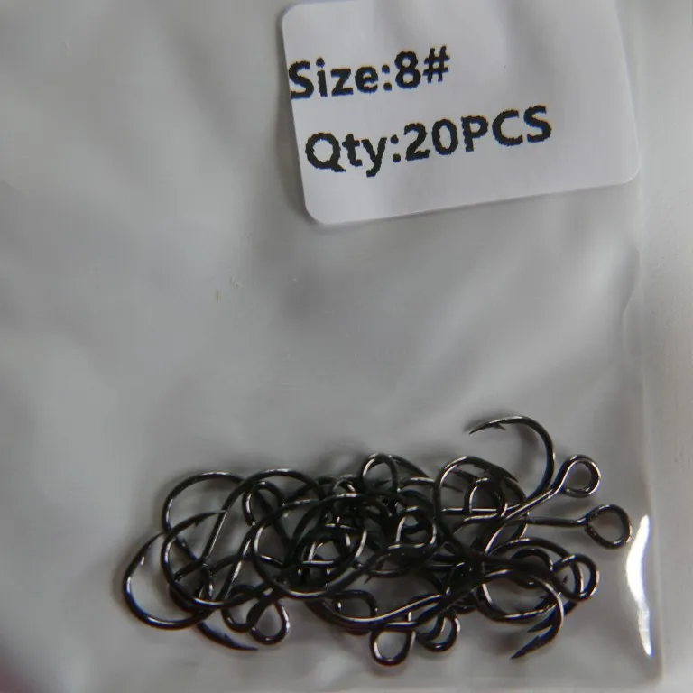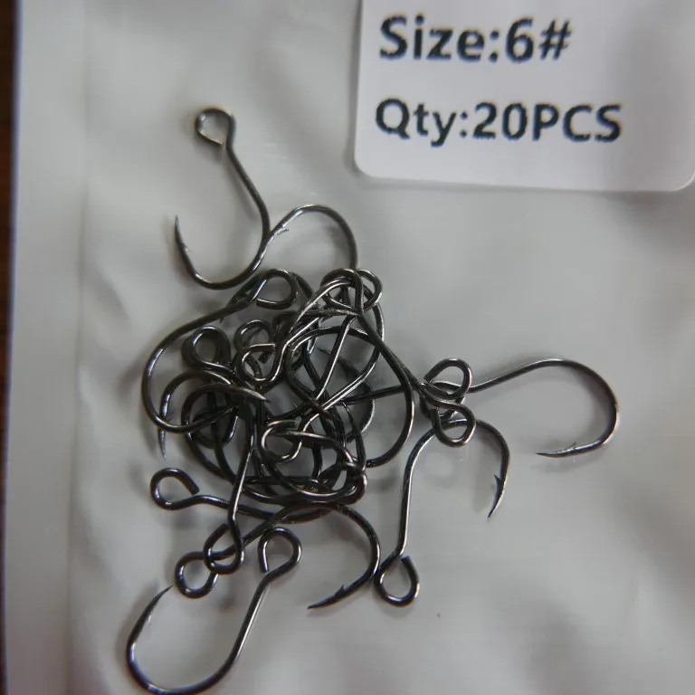 Bimoo-20 piezas para señuelo de pesca, anzuelo de repuesto, individual, en línea, Gran Ojo, tamaño 2/0 1/0 1 2 4 6 8, afilado, de acero al carbono