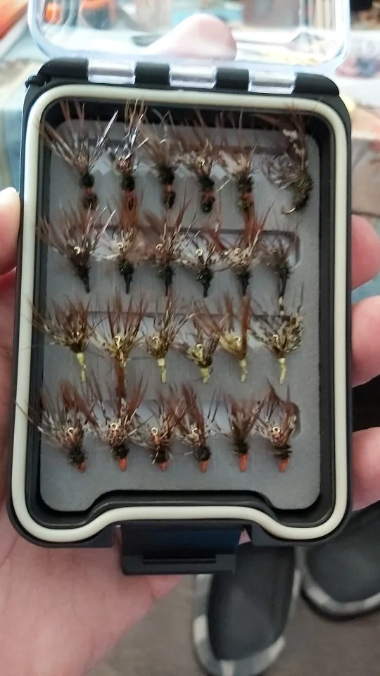 Bimoo 24 unids/caja "Tenkara moscas impermeable volar caja tamaño #12 púas gancho caña de pescar" Tenkara "(volar