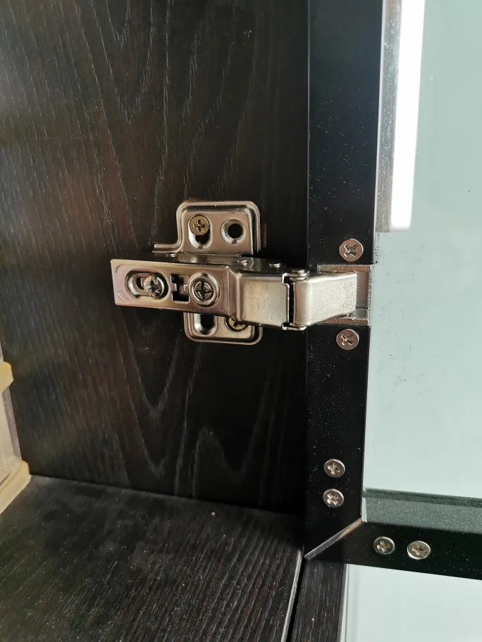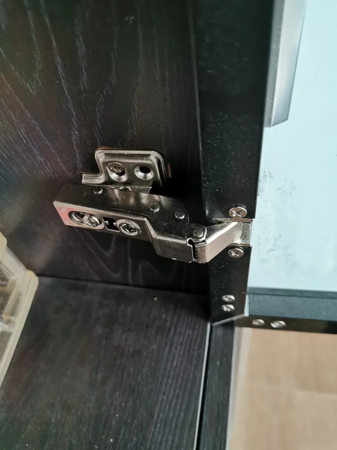 Uno herrajes de dudosa calidad. Aunque se ajustan correctamente a la puerta, tiene una serie de defectos importantes: No amortigua casi nada el cierre o apertura de la puerta. Cuidado al cerrarla para no romper el cristal. Otro gran fallo es el de no disponer de un acople rápido al soporte que se atornilla en el mueble, por lo que la instalación es complicadísima si no se dispone de otro par de manos de ayuda. Sujetar la puerta y atornillar al mismo es complicadísimo. Si puedes buscar soportes de más calidad, hacedlo.