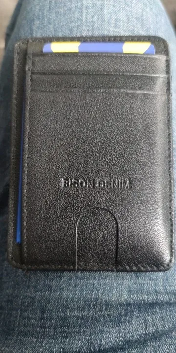 BISON DENIM-cartera minimalista de cuero de vaca para hombre, Tarjetero con bloqueo RFID, 11,3x8,2x1cm, W9670-1B