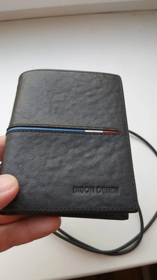 BISON DENIM marca de cuero genuino de primera capa de cuero corto cartera de negocios clásico de los hombres billetera con sostenedor de tarjetas Casual monedero N4437-2
