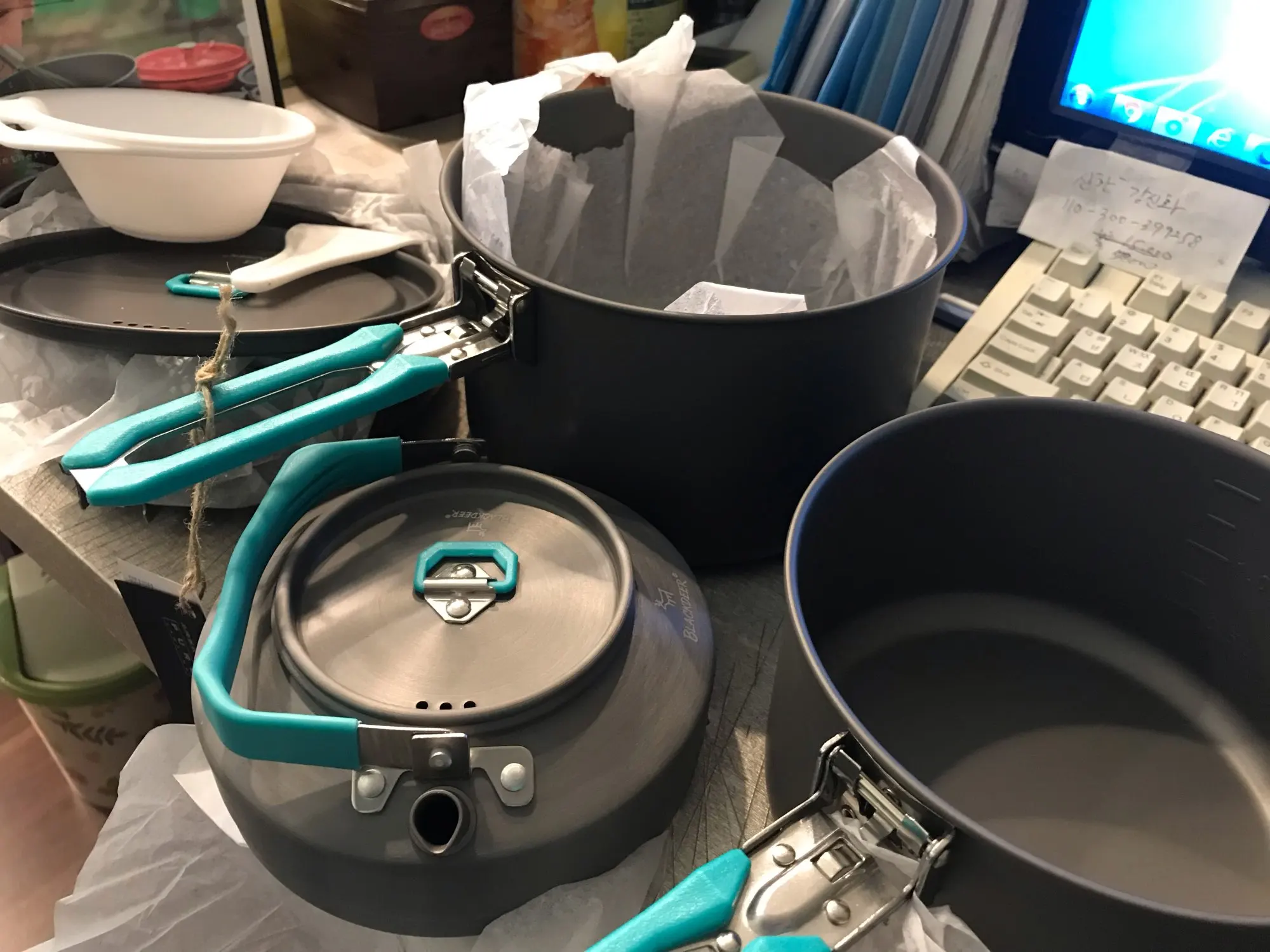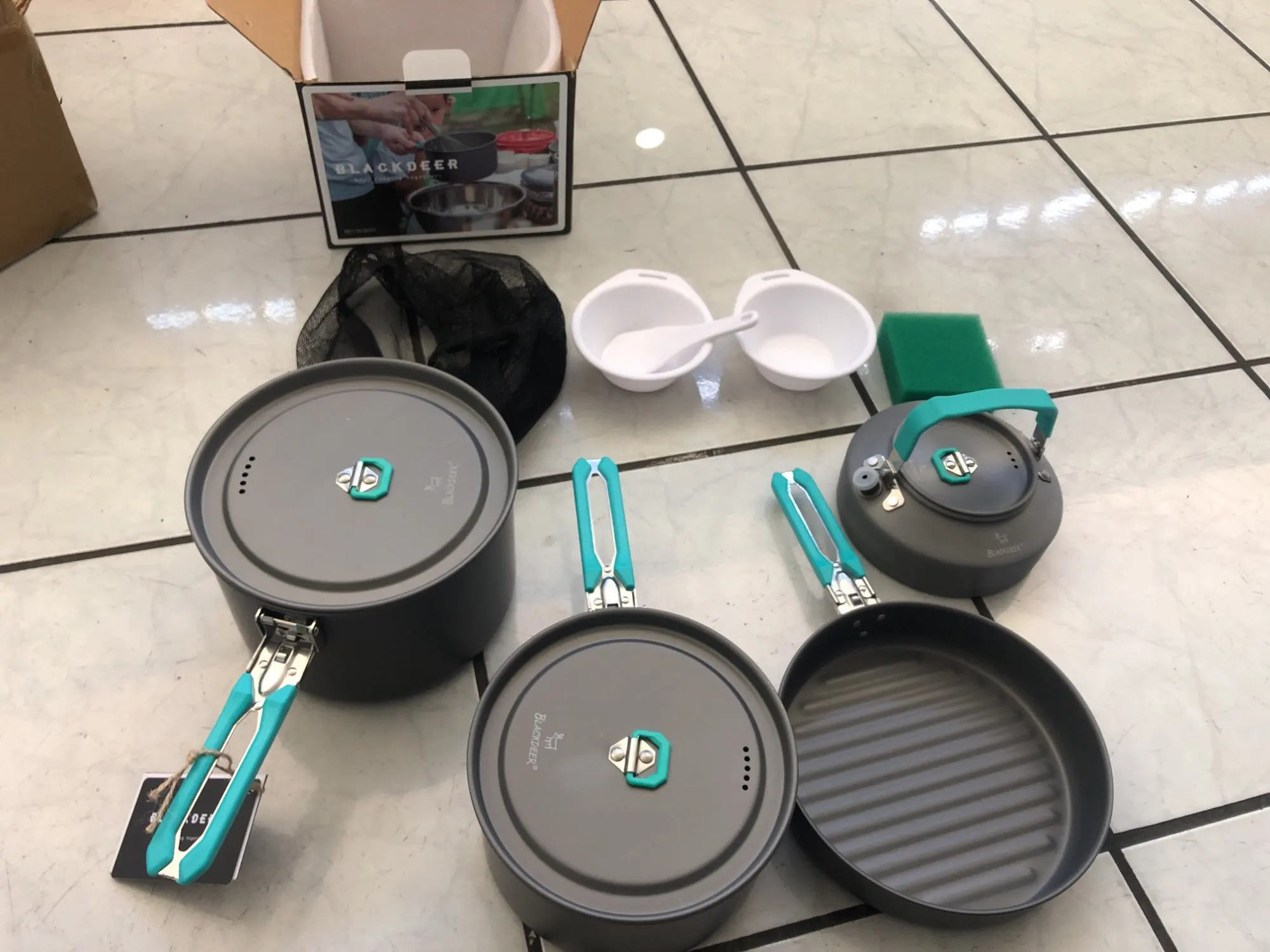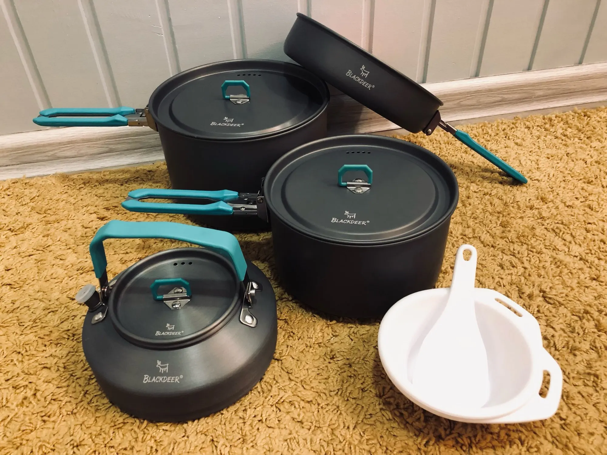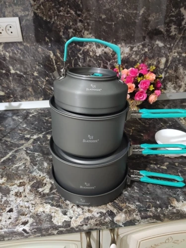 BLACKDEER-Juego de vajilla para acampar al aire libre, con mochilero, Picnic, 2 ollas, 1 sartén, 1 hervidor de agua, utensilio de cocina duradero, juego de cocina plegable