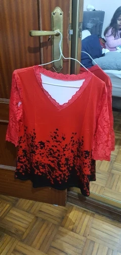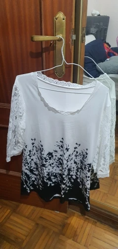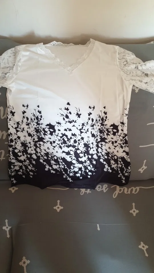 Blusa de camisa para mujer de talla grande 4xl 5XL 2022 primavera partes superiores nuevas cuello pico media manga encaje empalme estampado Boho camisa de mujer