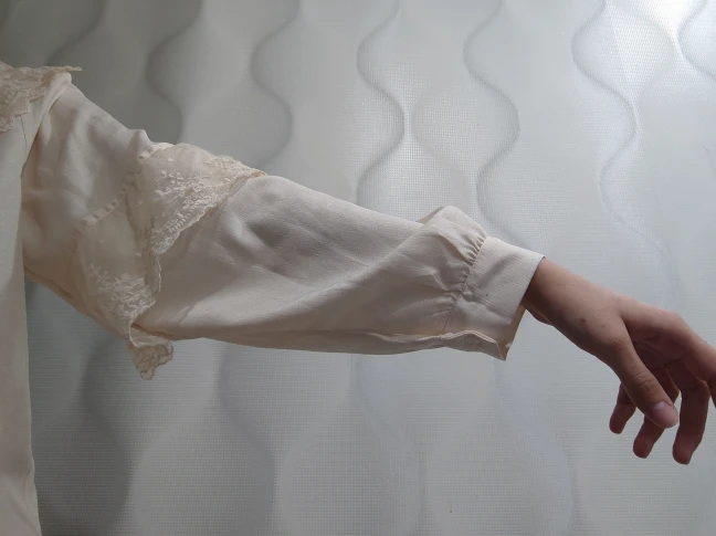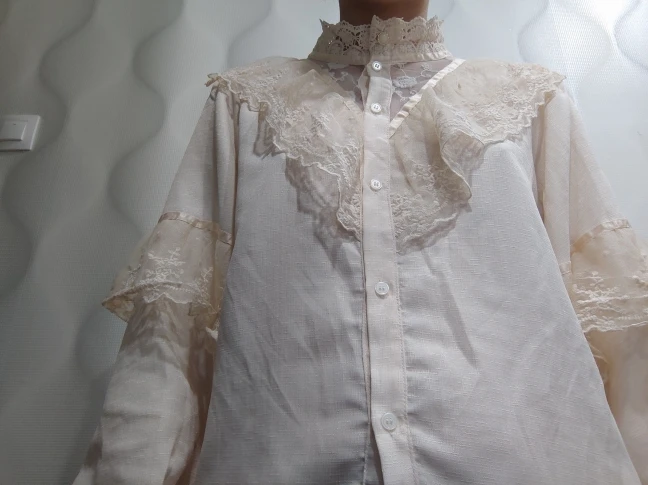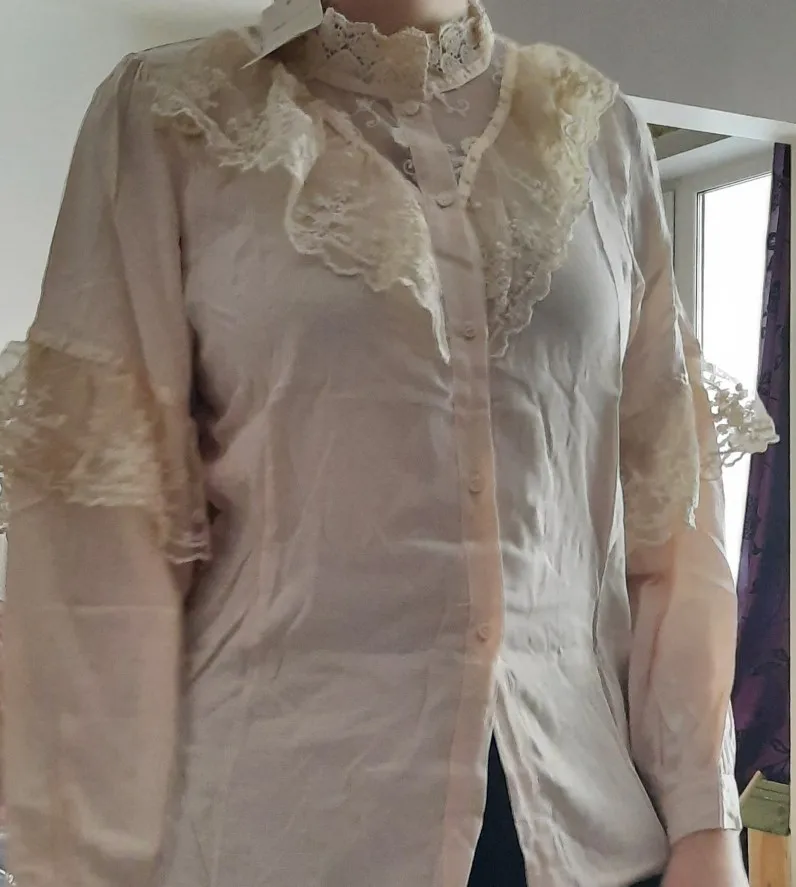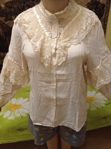 velmi rýchle dodanie. skvela bluzka,jemná romanticka ,príjemná na telo, dobrý material,nosím č.40. rukávy akurát ale som 158 /89/102