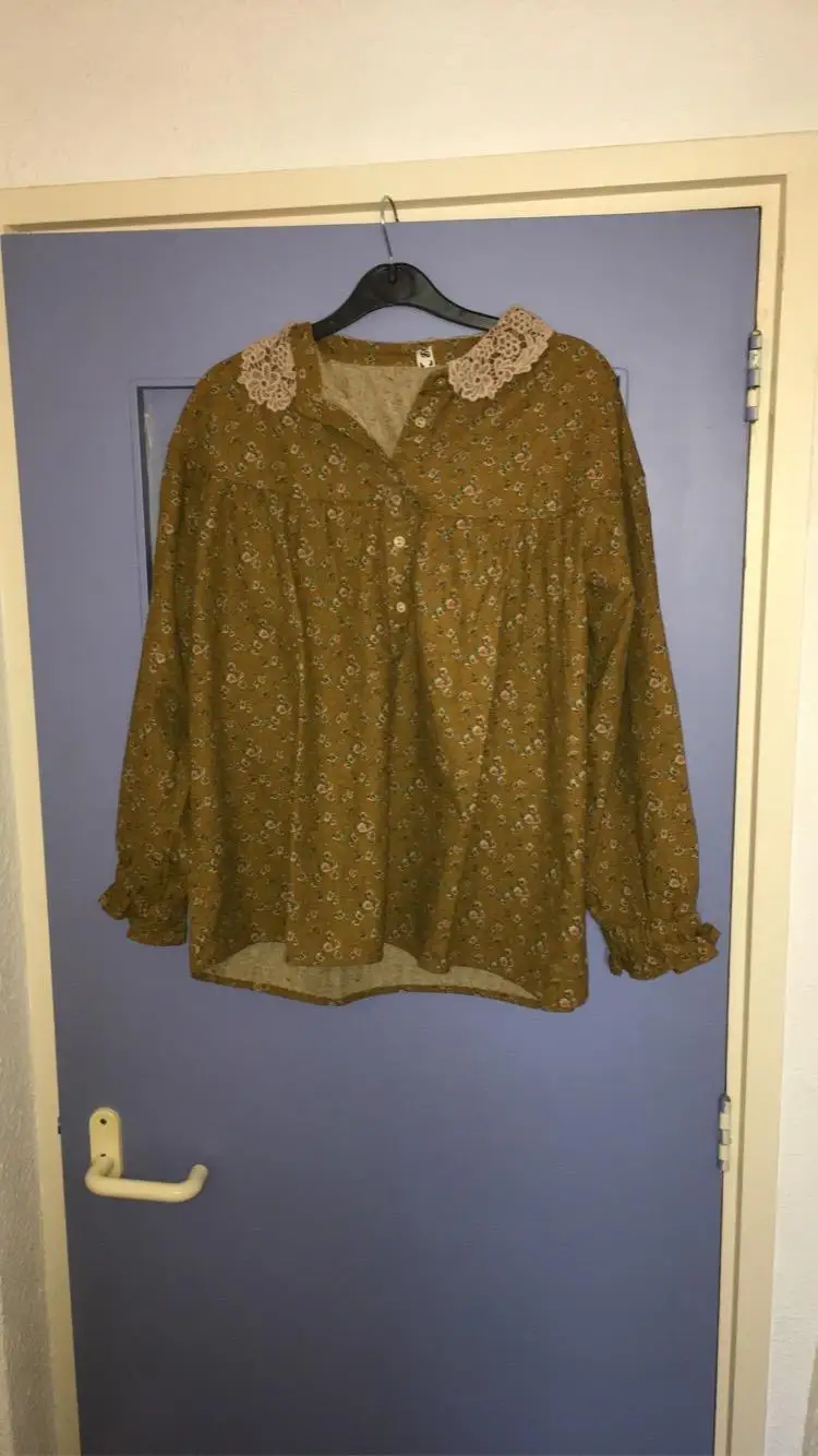 Blusa holgada de lino y algodón con manga larga para otoño, camisa con cuello de encaje para mujer, estilo japonés Mori, 8362