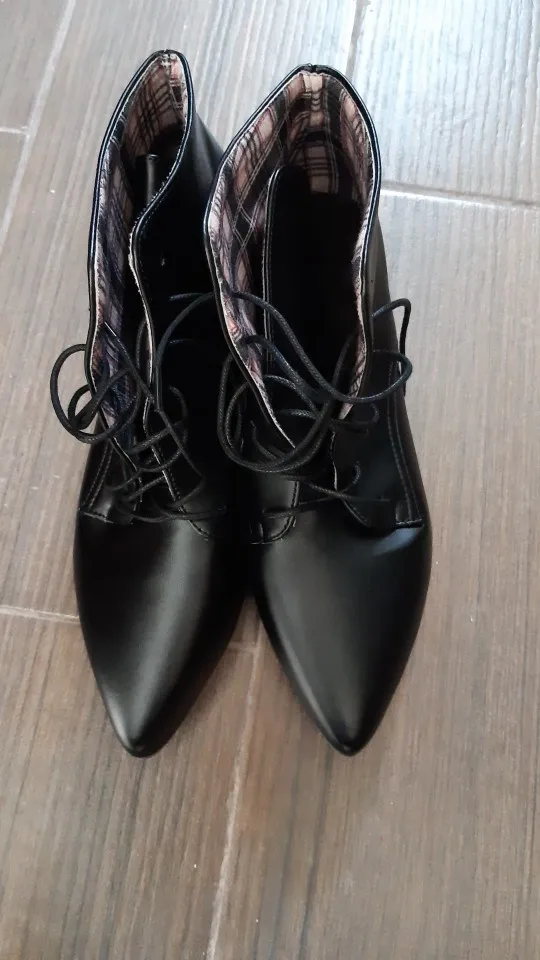 BLXQPYT-Botines de piel con cordones para mujer, botas femeninas de tacón bajo y delgado, con cordones, estilo Sexy, temporada primavera otoño