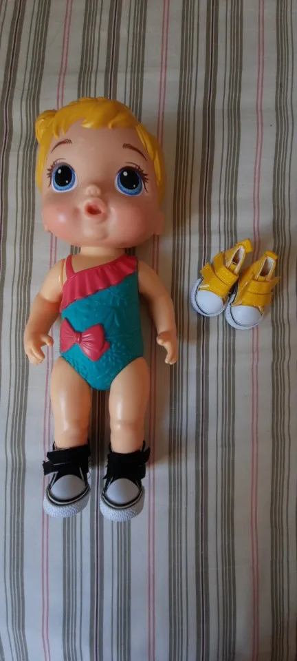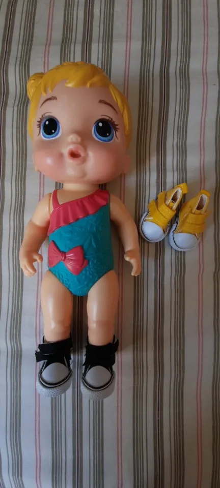 No son como la descripcion...son enormes. desproporcionadas para el tamaño de los pies de la muñeca y de la muñeca propia. deverian ser la mitad de grandes para q tubiera una buena proporcion