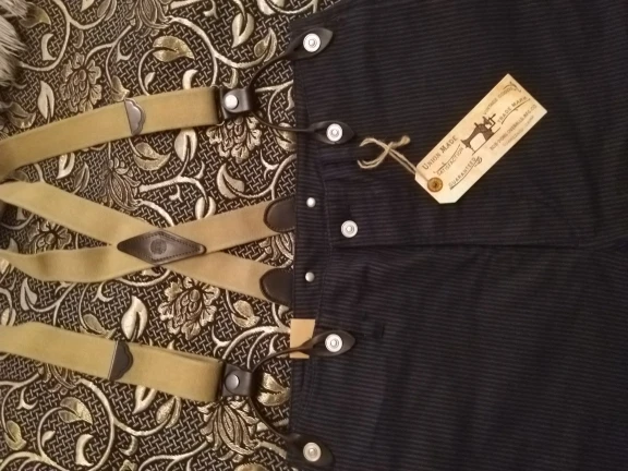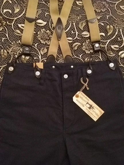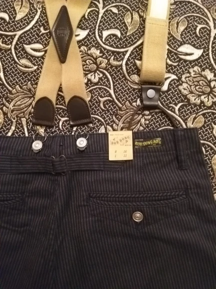 BOB DONG-traje Retro a rayas para hombre, pantalones informales con botones de tirantes