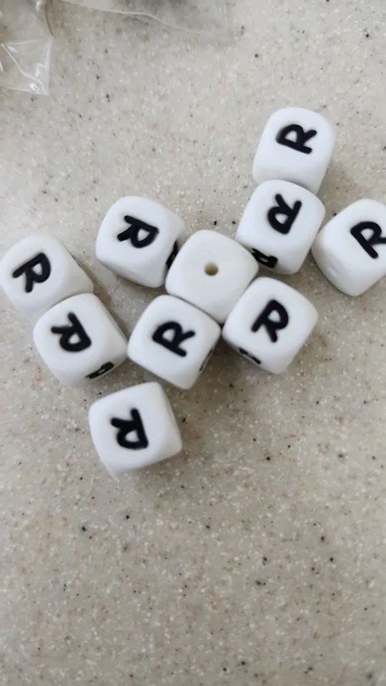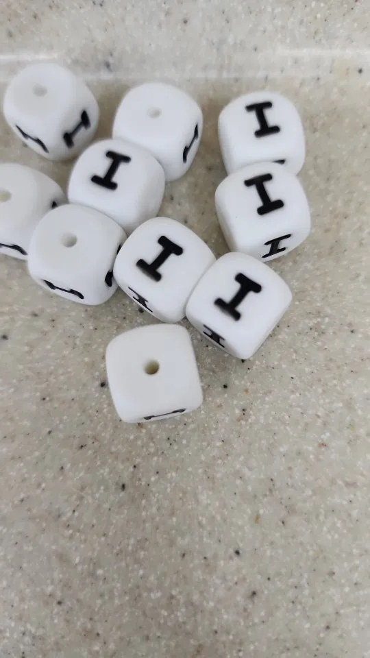 BOBO BOX-Cuentas de silicona con forma de dado y letras para bebé, cuentas de goma cuadradas de 12mm, con letras del alfabeto, para collar de dentición para bebé, para morder, 10 unidades