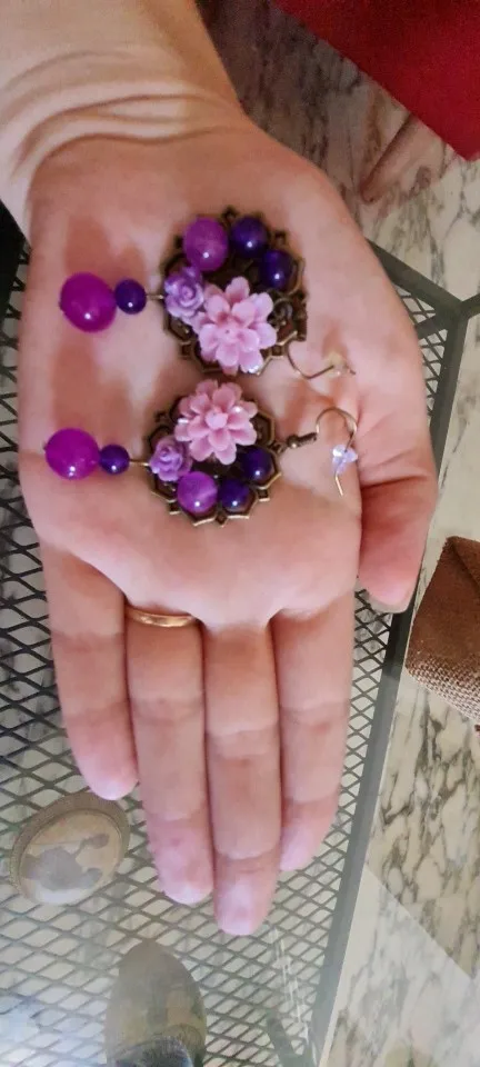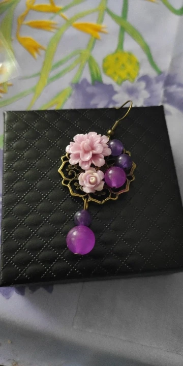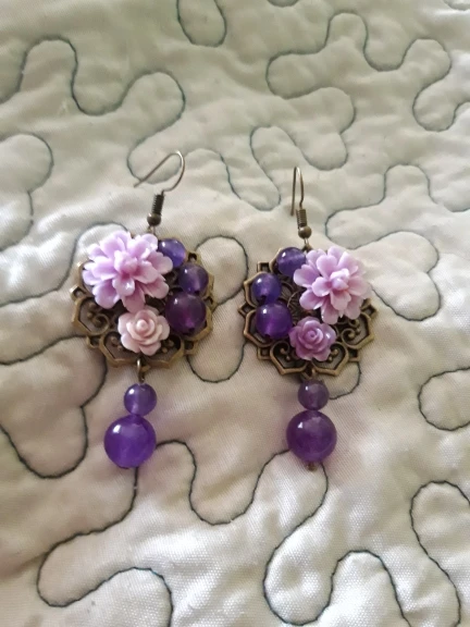 Amethyst Bead Flower Drop Earrings