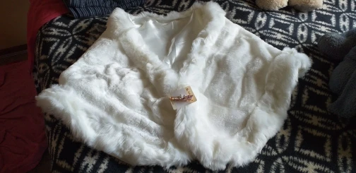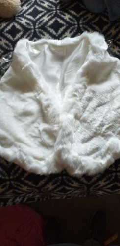 Muy lindo, buena calidad, el vendedor envía una traba para mantener el bolero cerrado. No es tan largo como en la foto, pero alcanza a cubrir perfectamente mis brazos y espalda. Lo recomiendo ☆☆☆☆☆