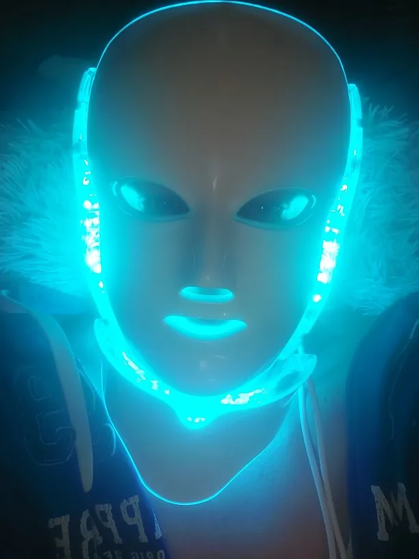 Bolsa de aire-máscara Facial con luz LED de 7 colores, con cuello, rejuvenecimiento de la piel, tratamiento cuidado Facial, terapia antiacné, blanqueamiento