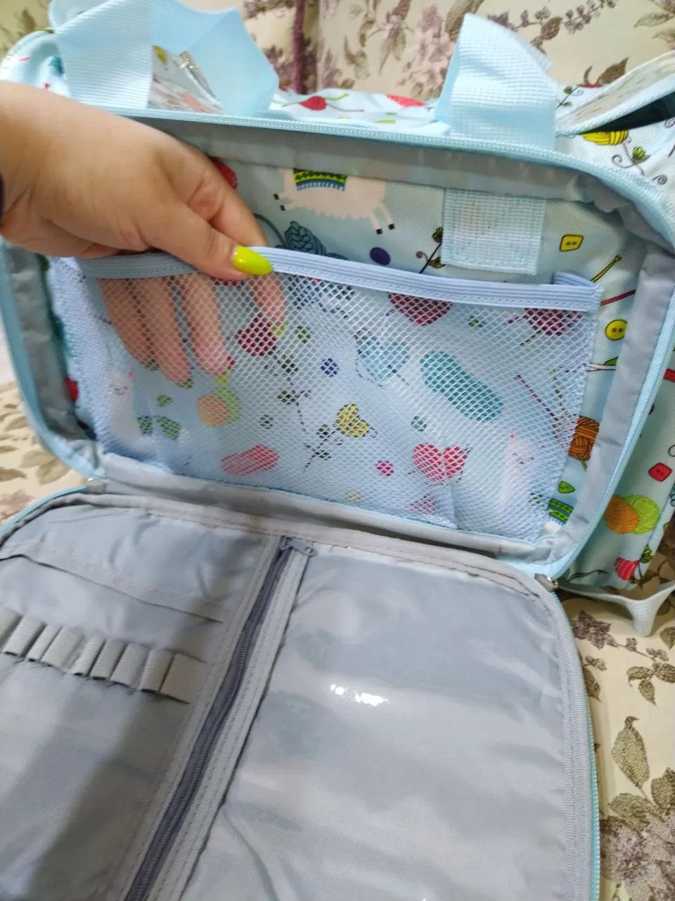 Exactamente como la descripción y las imágenes . Las tres secciones están acolchadas y llenas de compartimentos. Ha tardado en llegar unas 3 semanas aprox. Muy contenta con el producto.