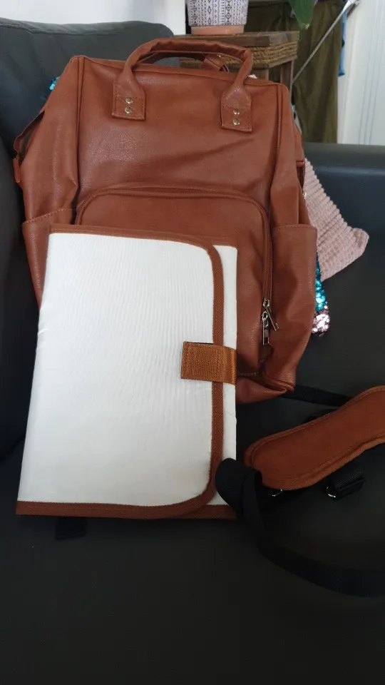 Bolsa de pañales de cuero sintético para bebé, bolso de maternidad con almohadilla cambiante, correas de cochecito, a prueba de agua, Unisex