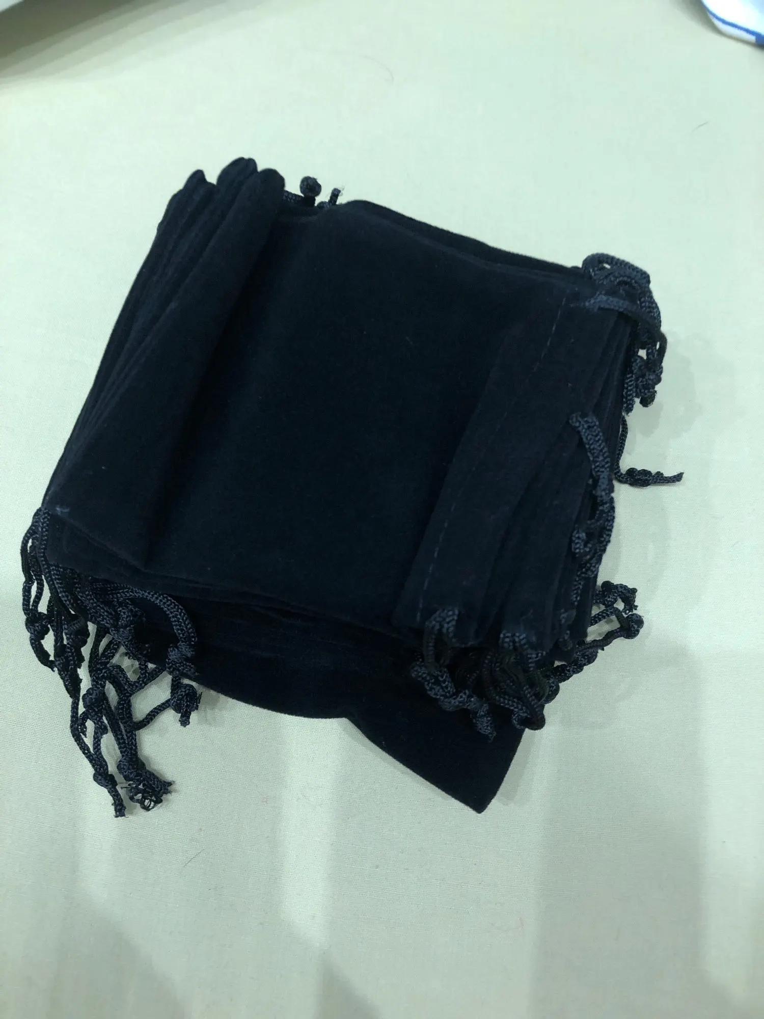 Bolsas de regalo de joyería de terciopelo negro, bolsas de regalo de joyería con cordón, 7x9, 9x12, 10x16, 13x18, 15x20cm, boda, Navidad, embalaje de joyería, 20 Uds.