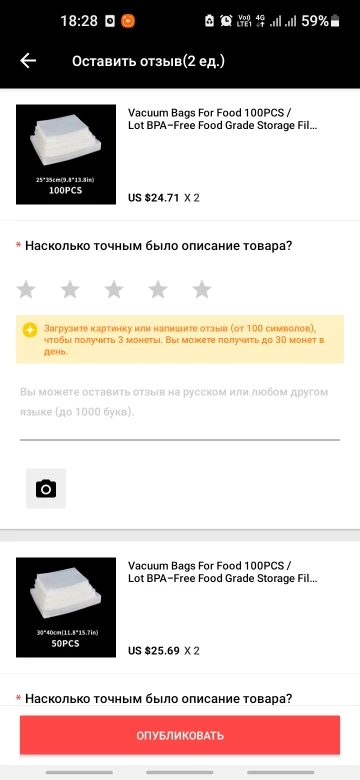 Valoración de Aliexpress: