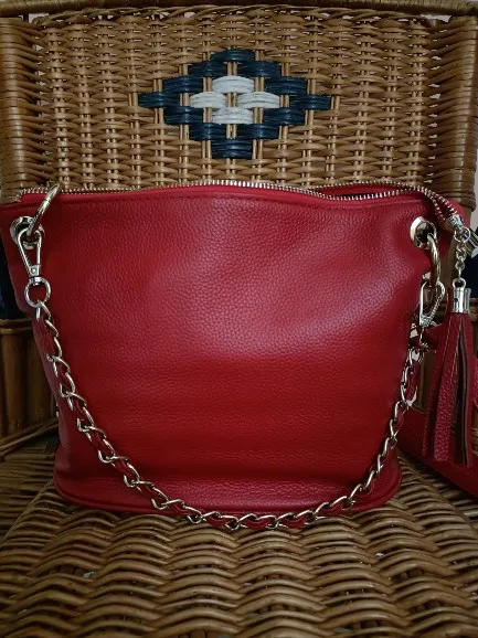 Bolso de Cuero de vaca real de cuero genuino para mujer, borla Retro, cadenas, bandoleras cruzadas a la moda, B140