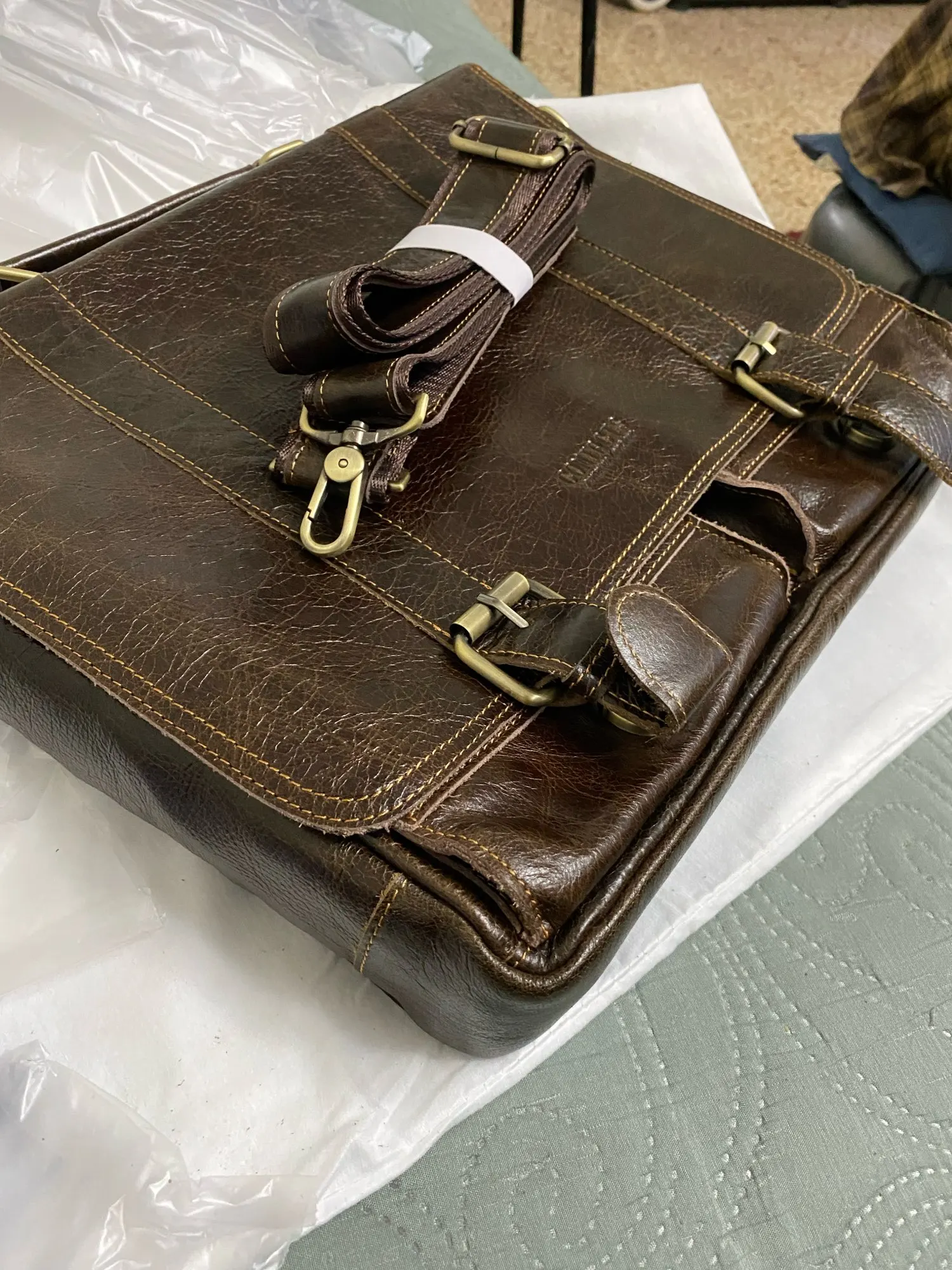 Ha llegado muy rápido, el paquete iba totalmente protegido con el embalaje. El maletín es muy bonito, de piel natural tal y como lo describe el vendedor.