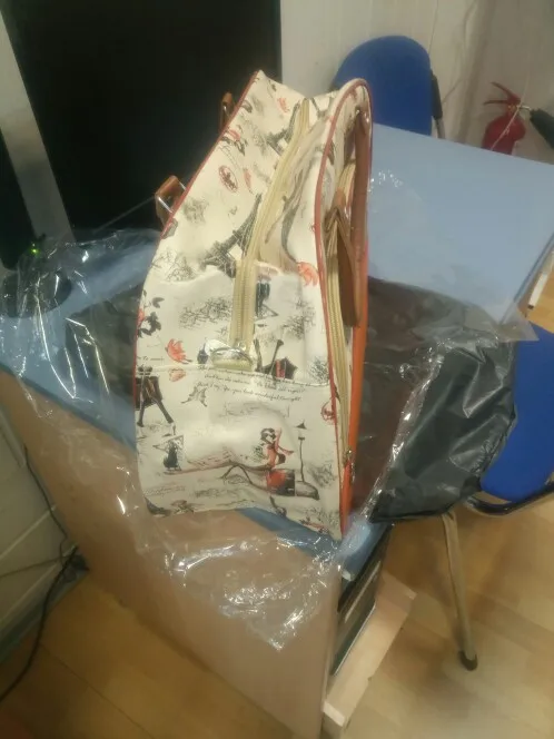 Es más pequeña de lo que pensaba. Material de plástico. El dibujo igual a la foto.