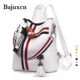 Bolsos blancos y negros para mujer, mochila escolar de cuero PU con cremallera, tipo bandolera bolso de hombro, 2022