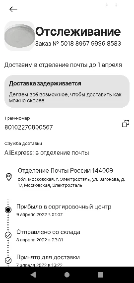 Valoración de Aliexpress: