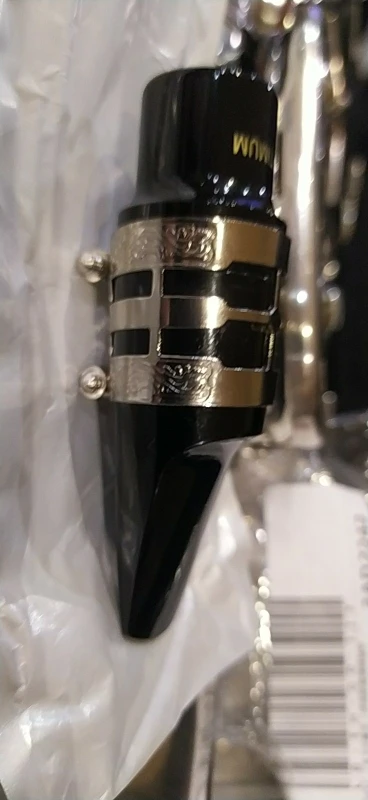 Boquilla de baquelita de goma para clarinete de saxo Alto, Ligadura de Metal, tallada en oro y plata