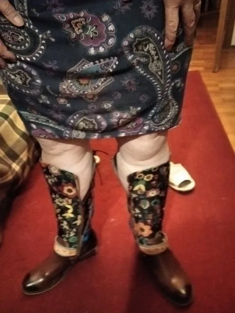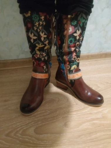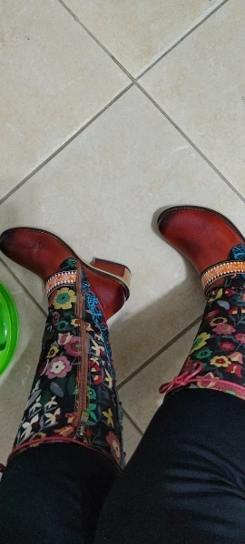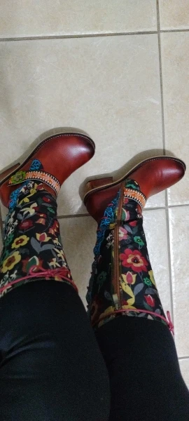 Botas con estampado Retro de flores para Mujer, zapatos de piel auténtica, de media caña, bohemios, para invierno