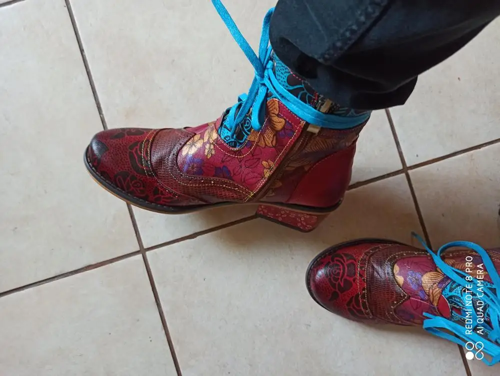 Botas de piel auténtica para mujer, botines de piel auténtica con tacón de bloque grueso, Estilo Vintage