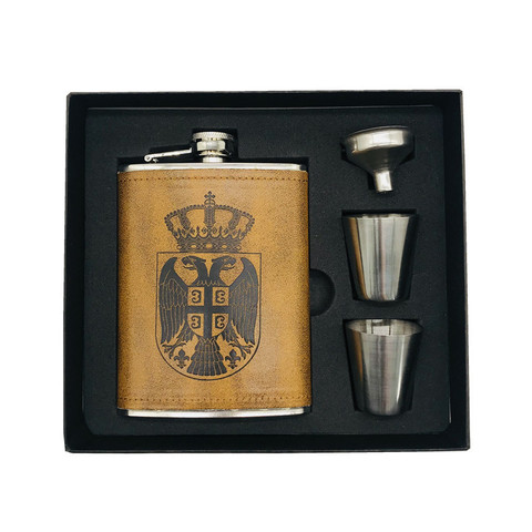 Botella de Whisky sin Bpa, 8oz, Vodka Flagon, Petaca de Alcohol de acero inoxidable 304 con Águila, envoltura de cuero de Pu, conjunto con caja de regalo