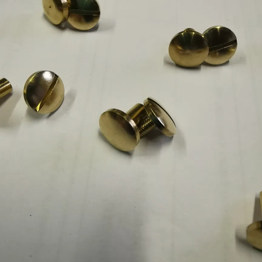 Botón de arco de latón macizo, tornillo de tuerca, remache, cinturón trasero para coser, hecho a mano, Material de cuero, accesorios, 4, 8 y 10mm, 10 Uds.