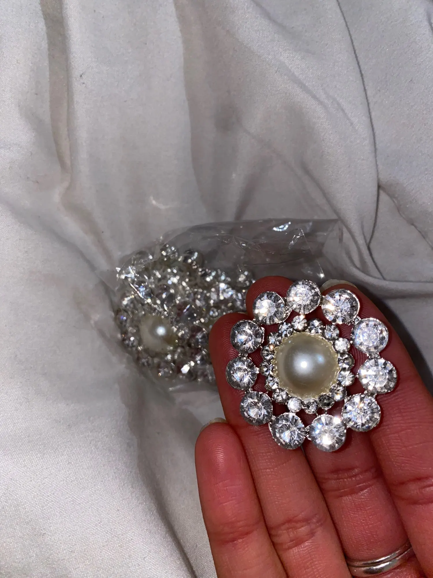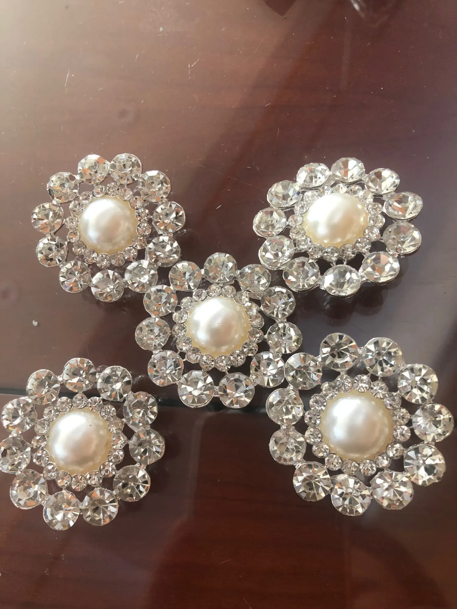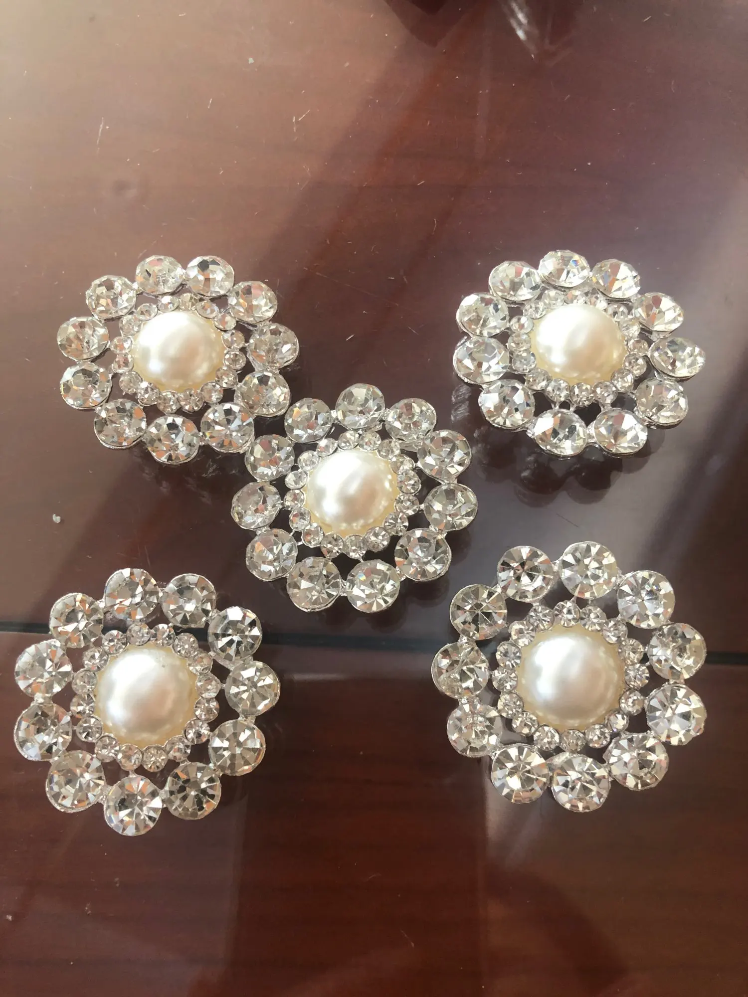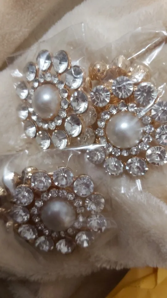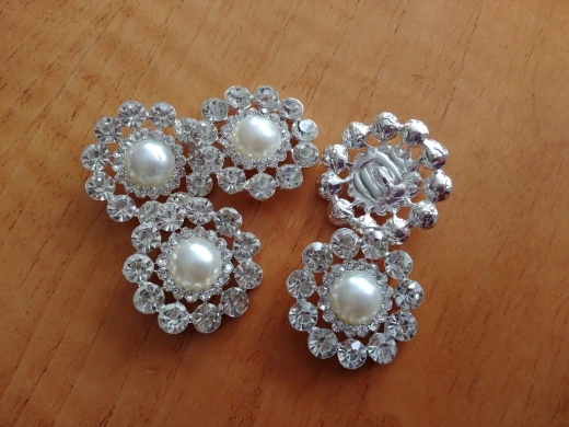 Botones de diamantes de imitación, mango de perla marfil, metal grande, 40mm, BT261, 5 uds.